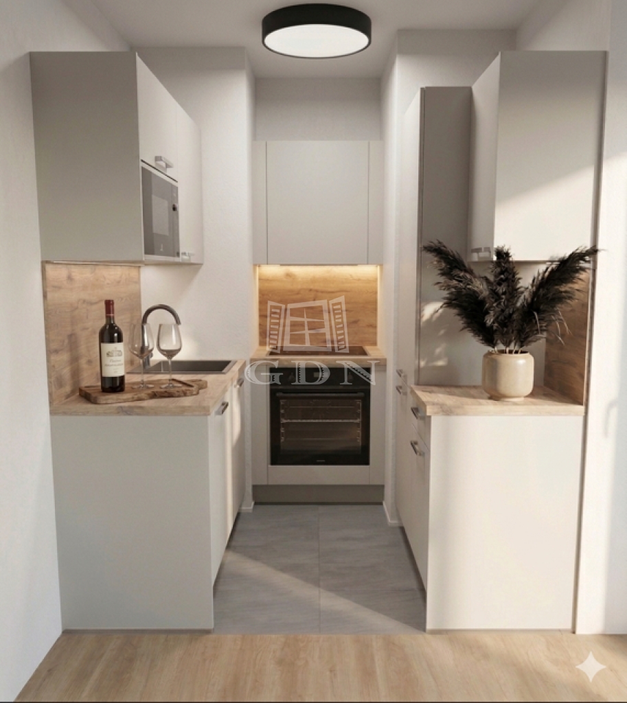 Ez a belső kertre néző, csendes, mégis világos lakás ideális választás mindazoknak, akik nem szeretnének kompromisszumot kötni.