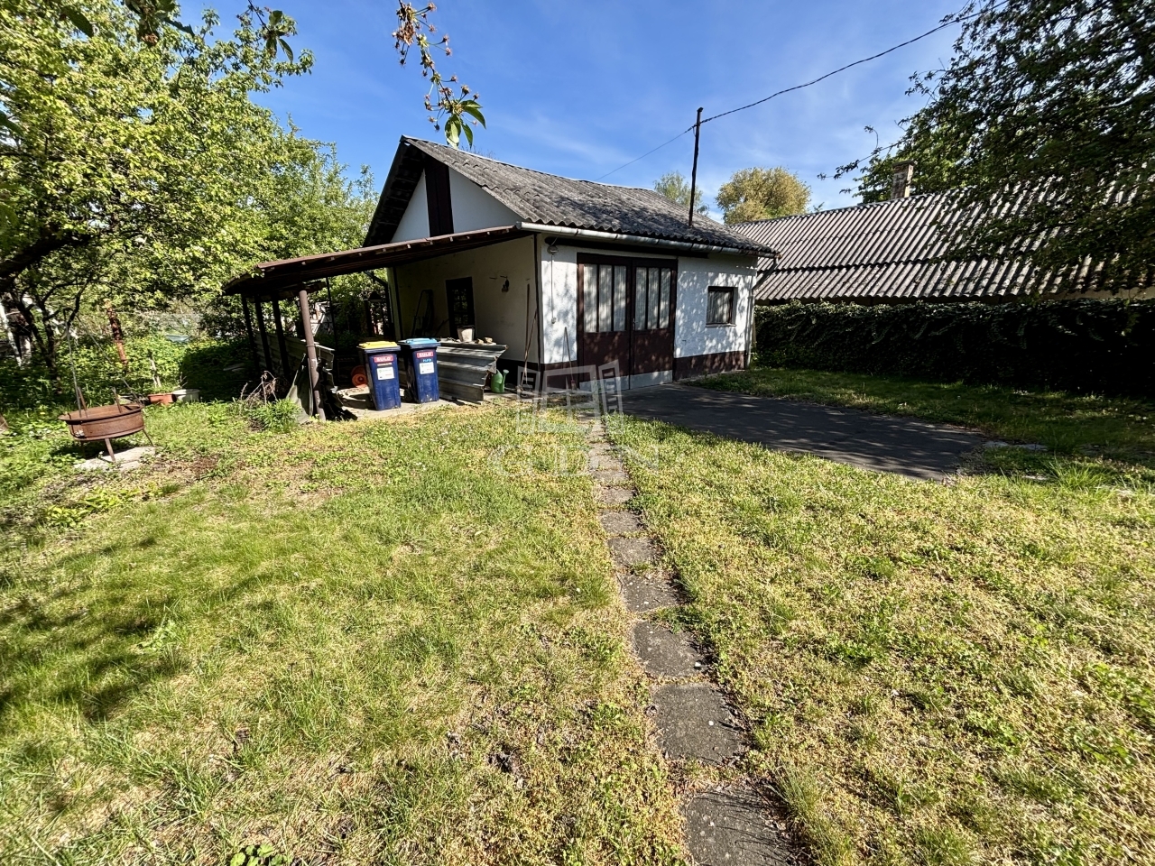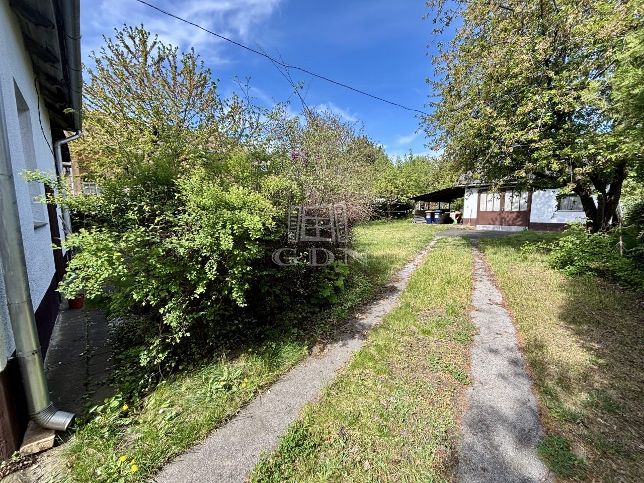 A telek végében egy garázs áll, mely szintén felújítást igényel.
