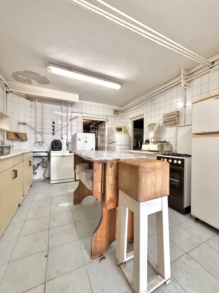 A helyiségben összesen 4 mosdó található: 2 női és 2 férfi, ami nagyobb vendégforgalom esetén is kényelmes használatot biztosít. A konyhából és a nagyteremből egyaránt megközelíthető egy közös belső udvar, amely további lehetőségeket rejt magában, például terasz vagy külön vendégtér kialakítására.