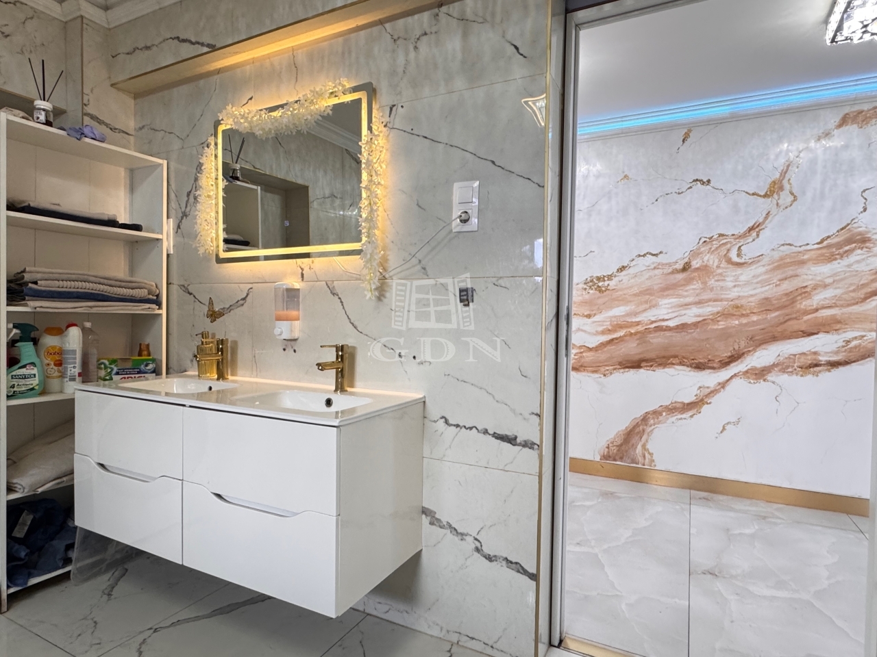 Az egyik hálószobához tartozik még egy zuhanyozós fürdőszoba WC-vel és egy gardrob szoba.
