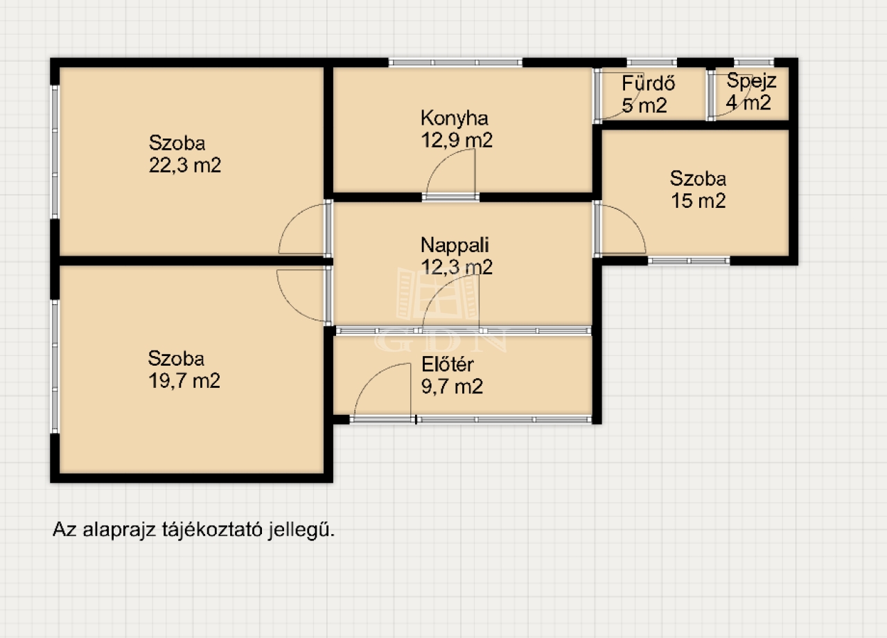 - 101 m2-en ad helyet egy előtér - folyosó együttesnek, 3 szobának, egy konyhának, spezjnek, valamint egy fürdőkáddal és toalettel felszerelt fürdőszobának.
