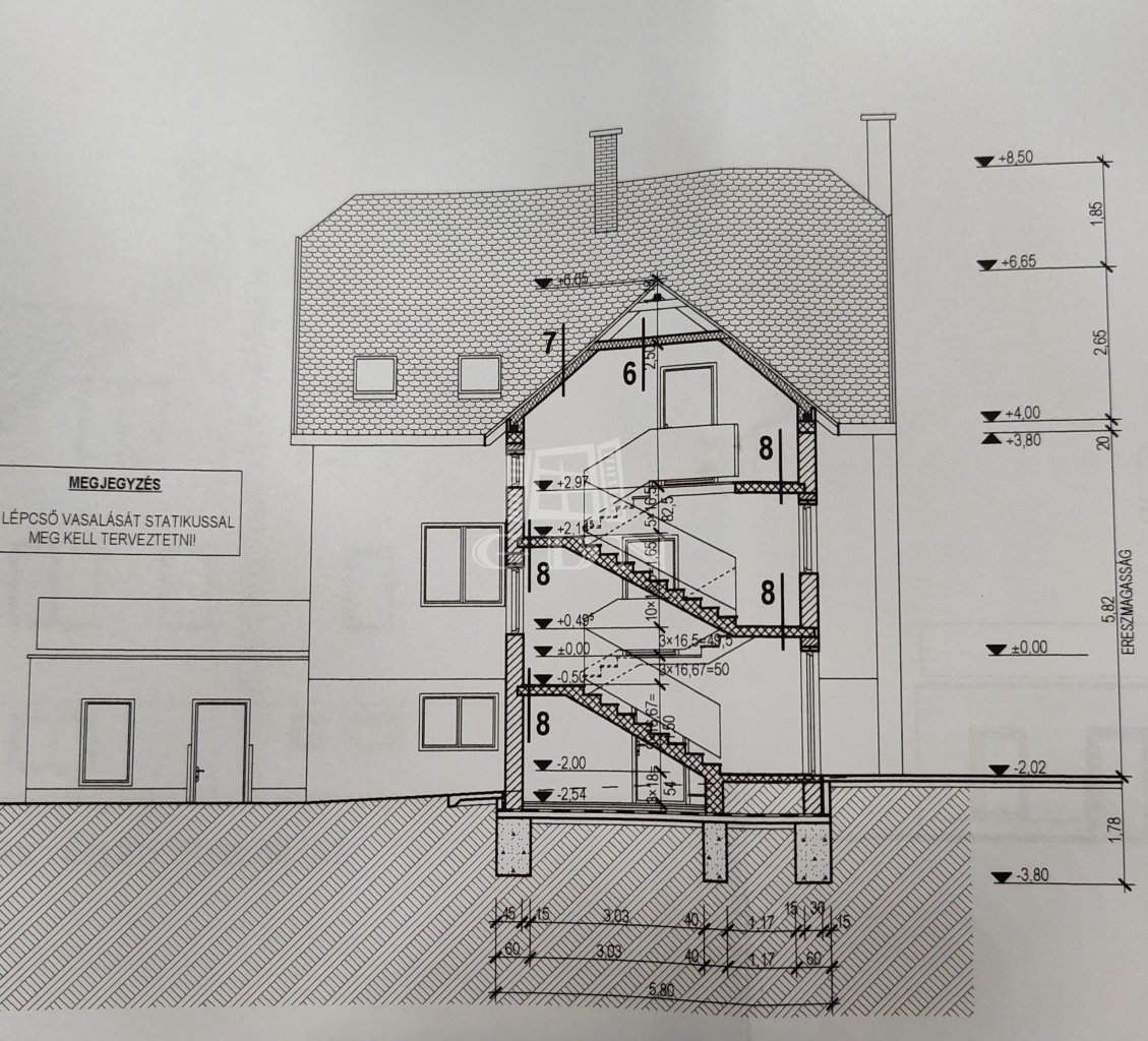 A háromszintes ház bruttó 340 nm ,nettó 298 nm ez 7+2 fél szobás 3 fürdős 3 konyhás és 4 wc 2 gardrób illetve tároló és kazánházat és egy lépcsőházat foglal magába.