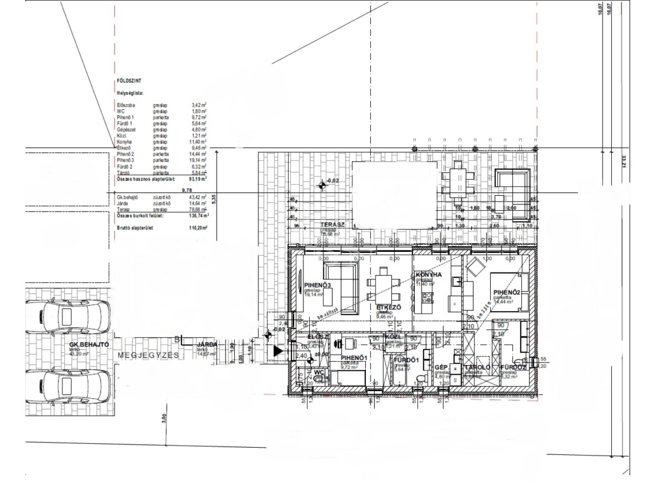 A 2025-ben épült ingatlan 93 négyzetméter hasznos alapterülettel rendelkezik, mely ideális elrendezést biztosít: egy körbe napozott amerikai konyha-nappali mellett két tágas hálószoba, két különálló fürdőszoba, előszoba és háztartási helyiség került kialakításra. A belső tér rugalmasan alakítható, így igény szerint akár nappali + 3 szobás elrendezés is megvalósítható. Az életteret jelentősen kiterjeszti a házhoz kapcsolódó 79 négyzetméteres terasz.