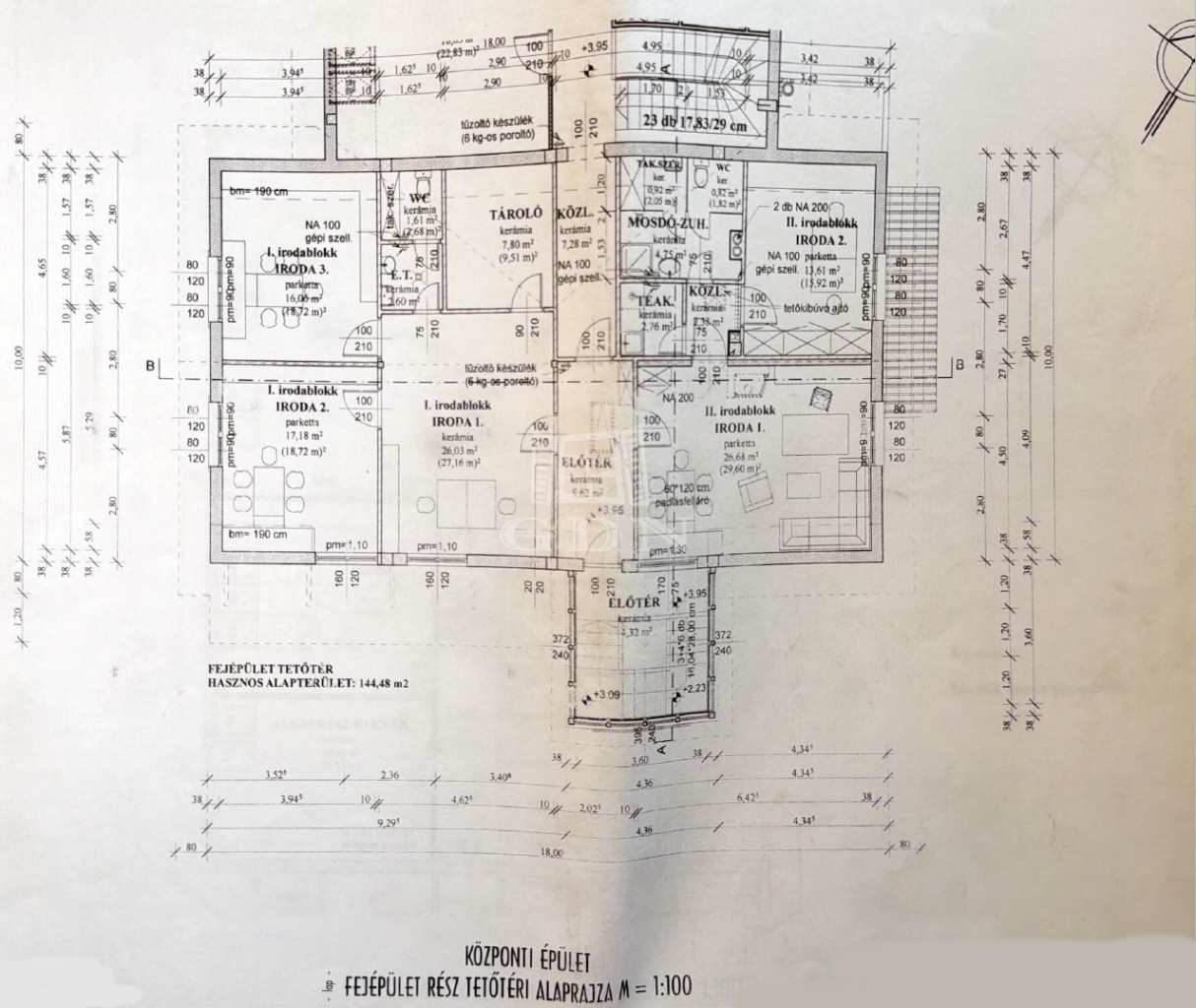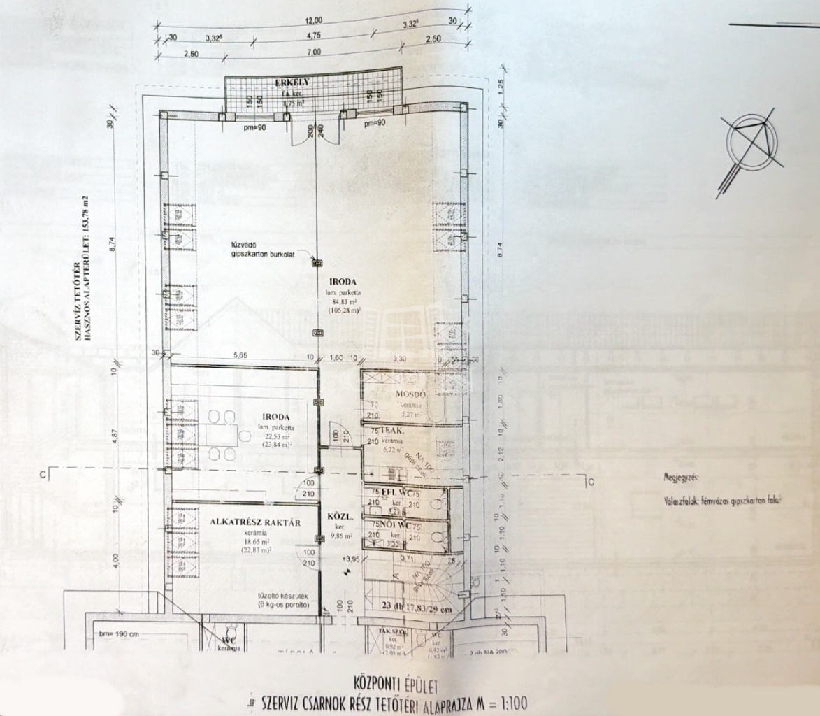 Itt is található további alkatrészraktár/tárolóhelyiség/irattár stb. és a kiszolgáló helyiségek, így a műszaki és adminisztratív területek jól elkülöníthetők.