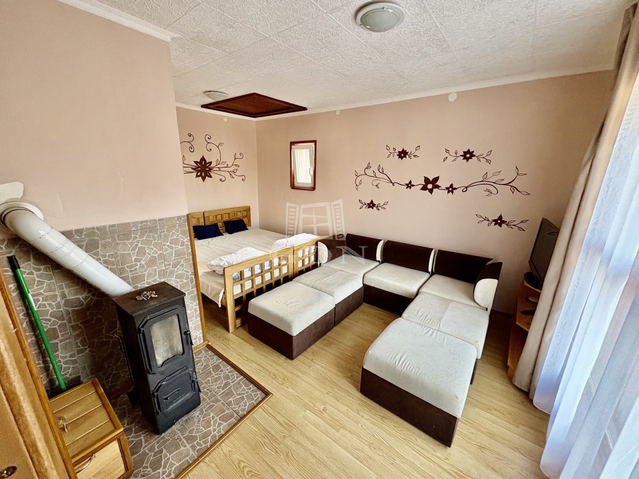 A fűtésről kandalló gondoskodik, ami a hűvösebb estéken is garantálja a meghittséget.