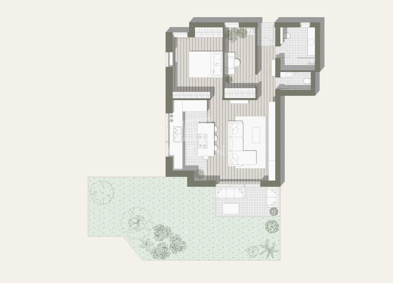 A 2022-ben épült, 62m²-es földszinti lakás Érd egyik legkeresettebb zöldövezeti részén, Parkvárosban, csendes helyen található.