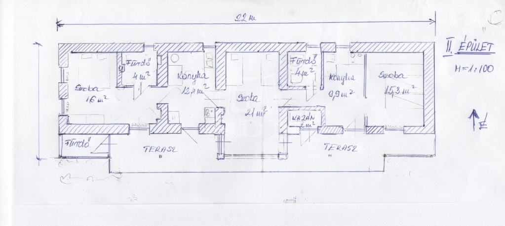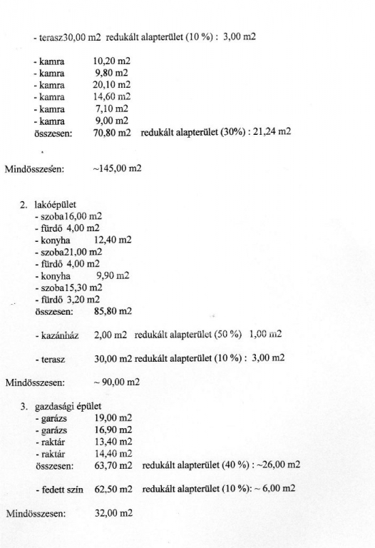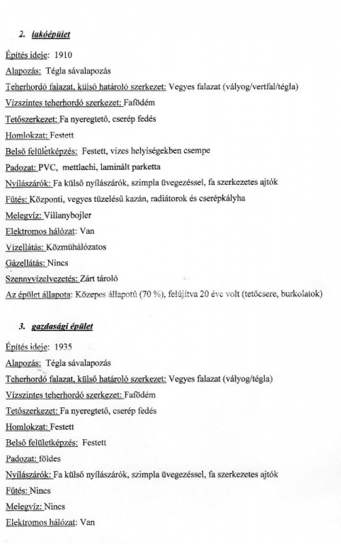 Lakóépület II: Épült 1910 ben, tégla alapozású, vegyes falazatú, teljes felújítás, bővítés 2000-es évek elején történt. Jó állapotú, szintén 3 szobás, 90 nm alapterületű.