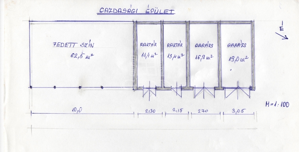 Gazdasági épület: 64 nm /garázsok-raktár/