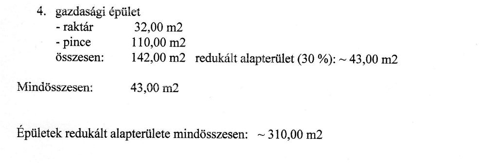 Raktár: 32 nm, pince: 110 nm, fedett szín: 65 nm.