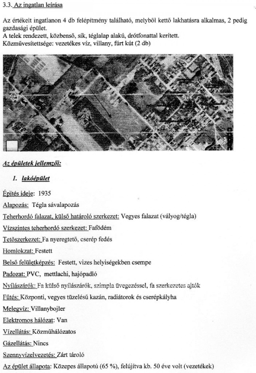 Művelési ága : belterületi kivett lakóház, udvar, három gazdasági épület.