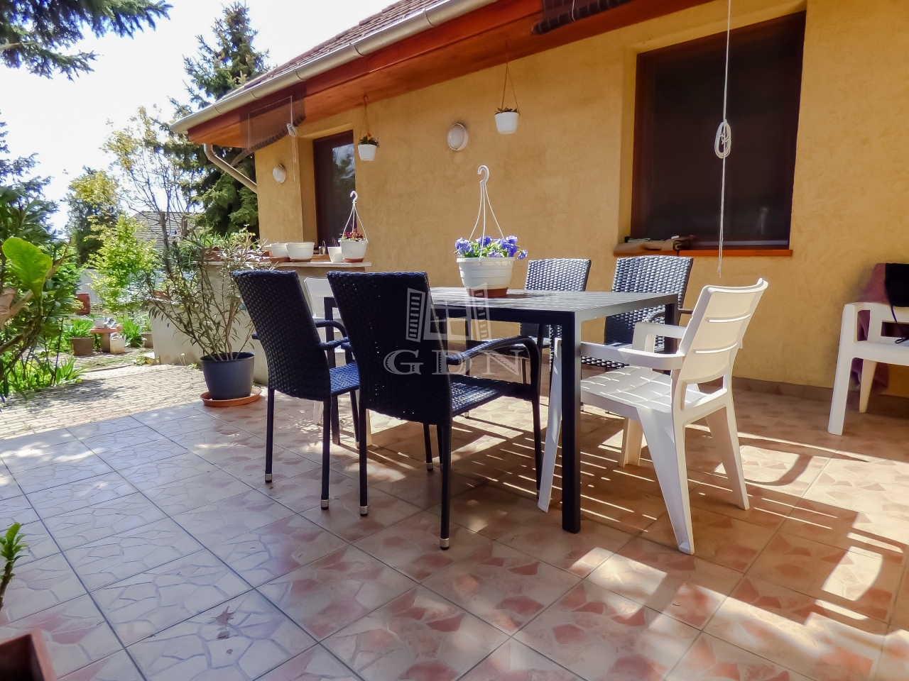 A kert gondozott, rendezett, kikapcsolódásra, pihenésre kiválóan alkalmas, az öntözés, esetlegesen egy medence feltöltése 38 m mély fúrt kútról megoldott.