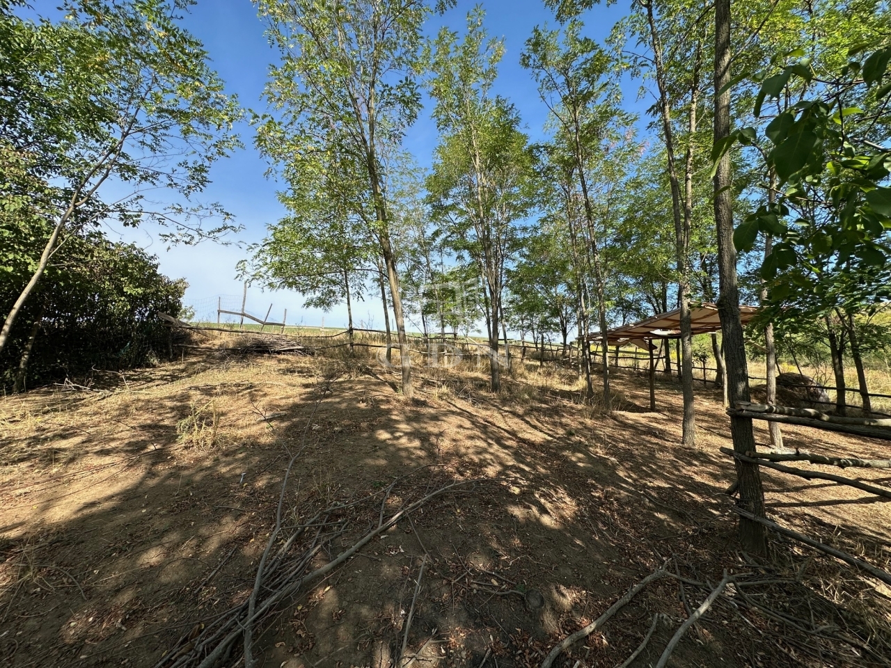 A telek teteje panorámás szomszéd dombokra és jelenleg, kis erdős rész lett kialakítva állatok tartására alkalmas "karámmal".