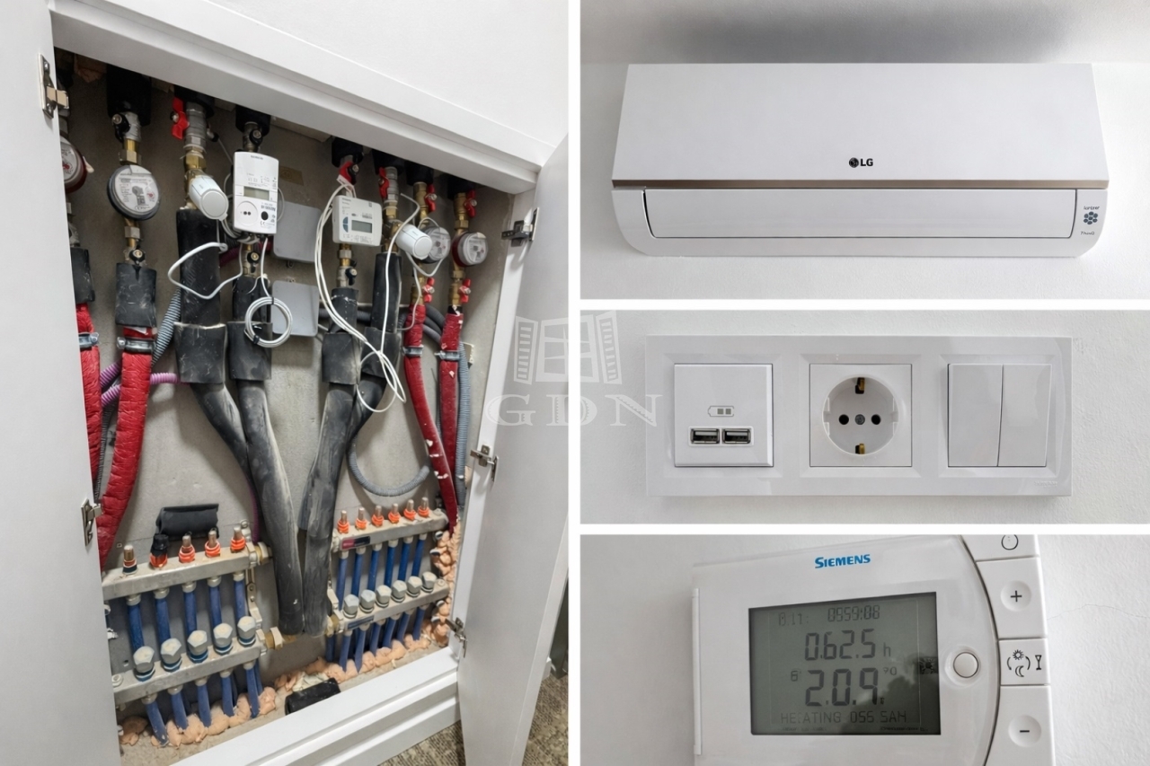 A lakás korszerű műszaki tartalommal rendelkezik: prémium minőségű beltéri ajtók, magas kopásállóságú burkolatok és háromrétegű műanyag nyílászárók kerültek beépítésre, elektromosan, akár távirányítóval is működtethető alumínium redőnyökkel. A fűtést és a használati melegvizet épületenkénti központi gázkazán biztosítja, padlófűtéses hőleadással. A hőmérséklet egyedi termosztáttal szabályozható, külön hőmennyiségmérővel.