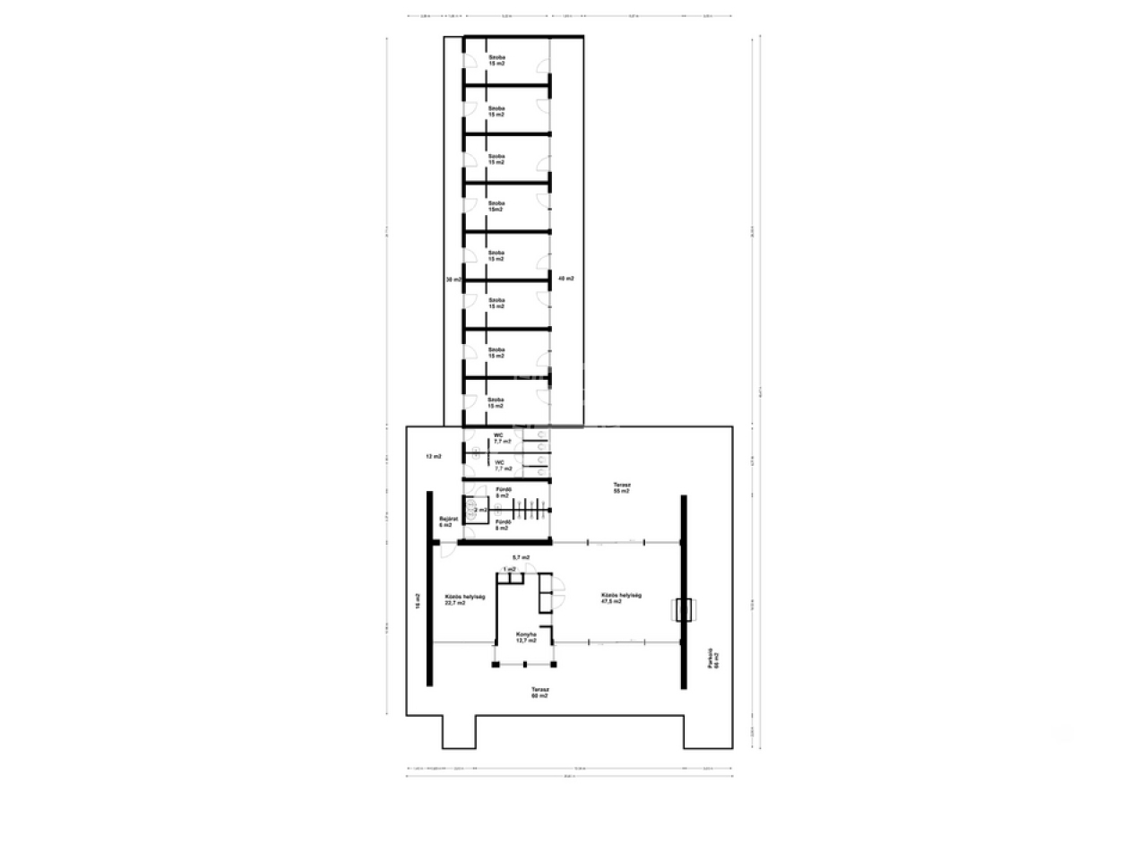 Szobák (8 *15 m2) 120 m2