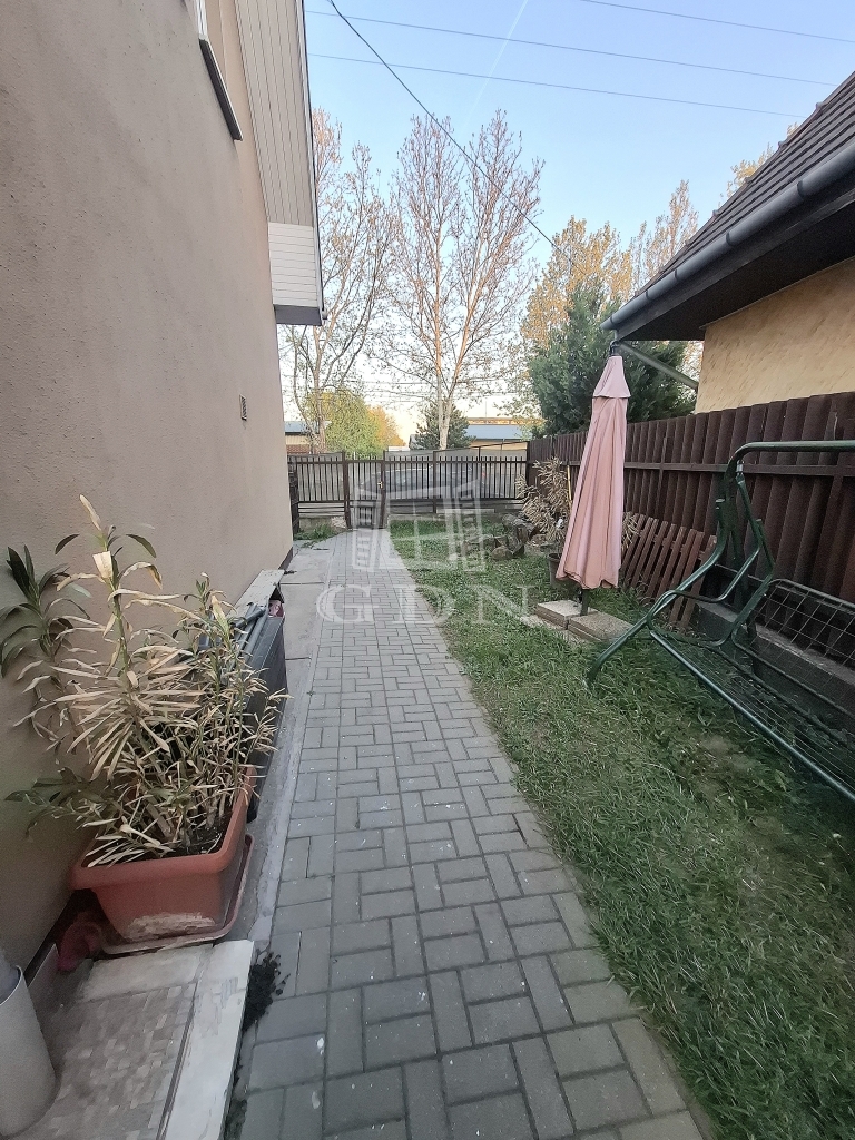A házhoz cca 80 nm saját használatú kert tartozik, gépkocsi beállási lehetőséggel.