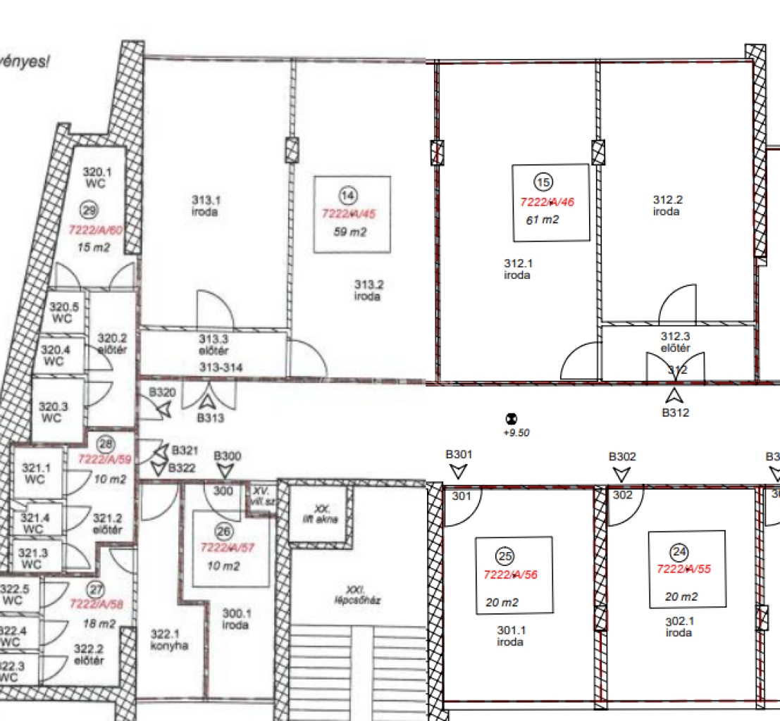 A földszinten raktár és iroda helyiségek, valamint vizesblokkok, az emeleten középfolyosós elrendezésű irodablokkok kerültek kialakításra vizesblokkokkal. A szintek közötti mozgást egy lépcsőház biztosítja.Lépcsőházban lift müködik.