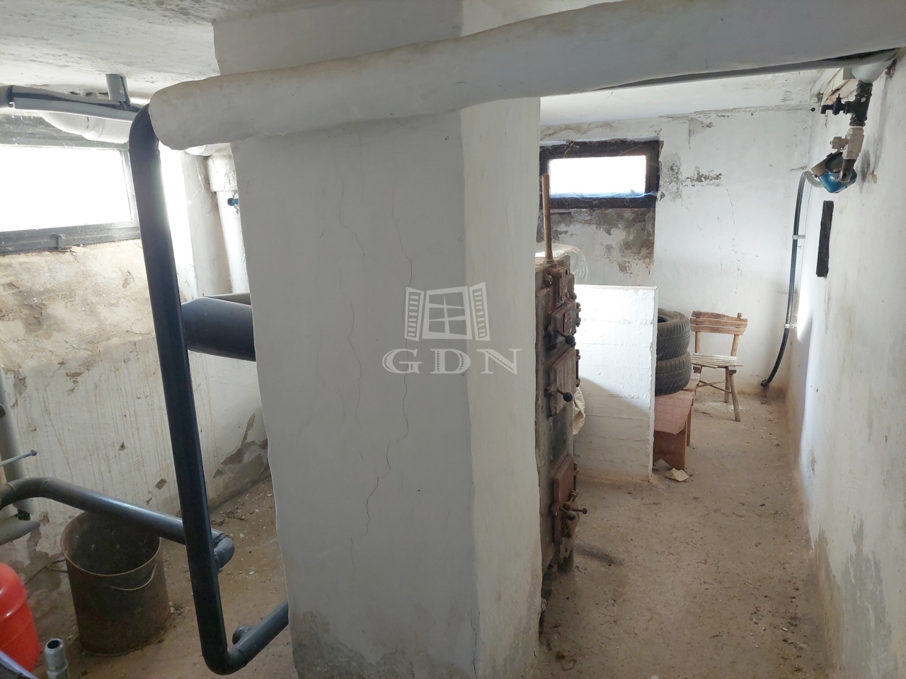 Az épület tetőszerkezete szigetelt lapos tető, a szint elválasztó födémek betongerenda alkalmazásával készültek, így a lapos tető helyett további tetőtéri lakórész kiépítése is lehetséges. A családi ház fűtése radiátoros központi fűtéssel van megoldva, mely a fürdőszobában található új kombinált gázkazánról vagy a vegyes tüzelésű kazánról működik. A vegyes tüzelésű kazán az épület alatt elhelyezkedő 13nm-es pincében található, mely pince egyúttal tárolóként is szolgál. Az épületben villany, víz, gáz és csatorna be van kötve.