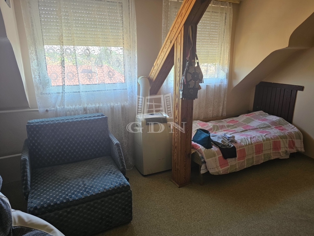 A kertes ház 1986-ban épült, beton alapzattal, részben tégla, részben szilikát falazattal. A tetőszerkezete jó állapotú nyeregtető, cserépfedéssel ellátva. A ház fűtése gázkazánnal és vegyes tüzelésű kazánnal megoldott radiátoros központi fűtés, továbbá több cserépkályha és klíma is rendelkezésre áll. Az épületben a földszinten 3 autónak is elegendő garázs kapott helyet, mely az utca frontjához képest ki van emelve, így nem folyik be a víz, mint a süllyesztett garázsoknál. A lakóépületnek több különálló bejárata van, két generációs házként is hasznosítható.