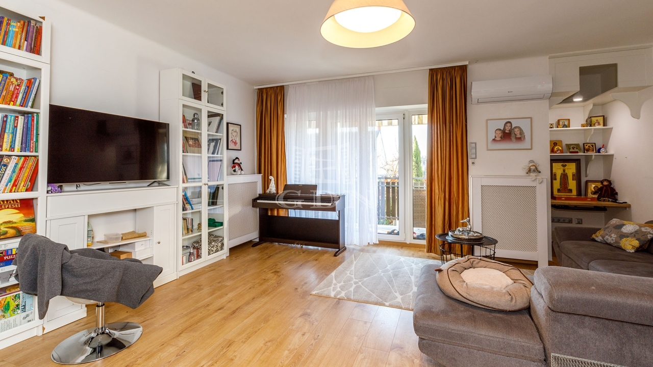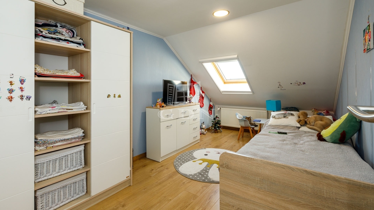 A hőszigetelést műanyag nyílászárók biztosítják, redőnyökkel és szúnyoghálókkal. Hűtő-fűtő klímaberendezés és a gázkazános fűtés pedig a megfelelő hőmérsékletet garantálja.