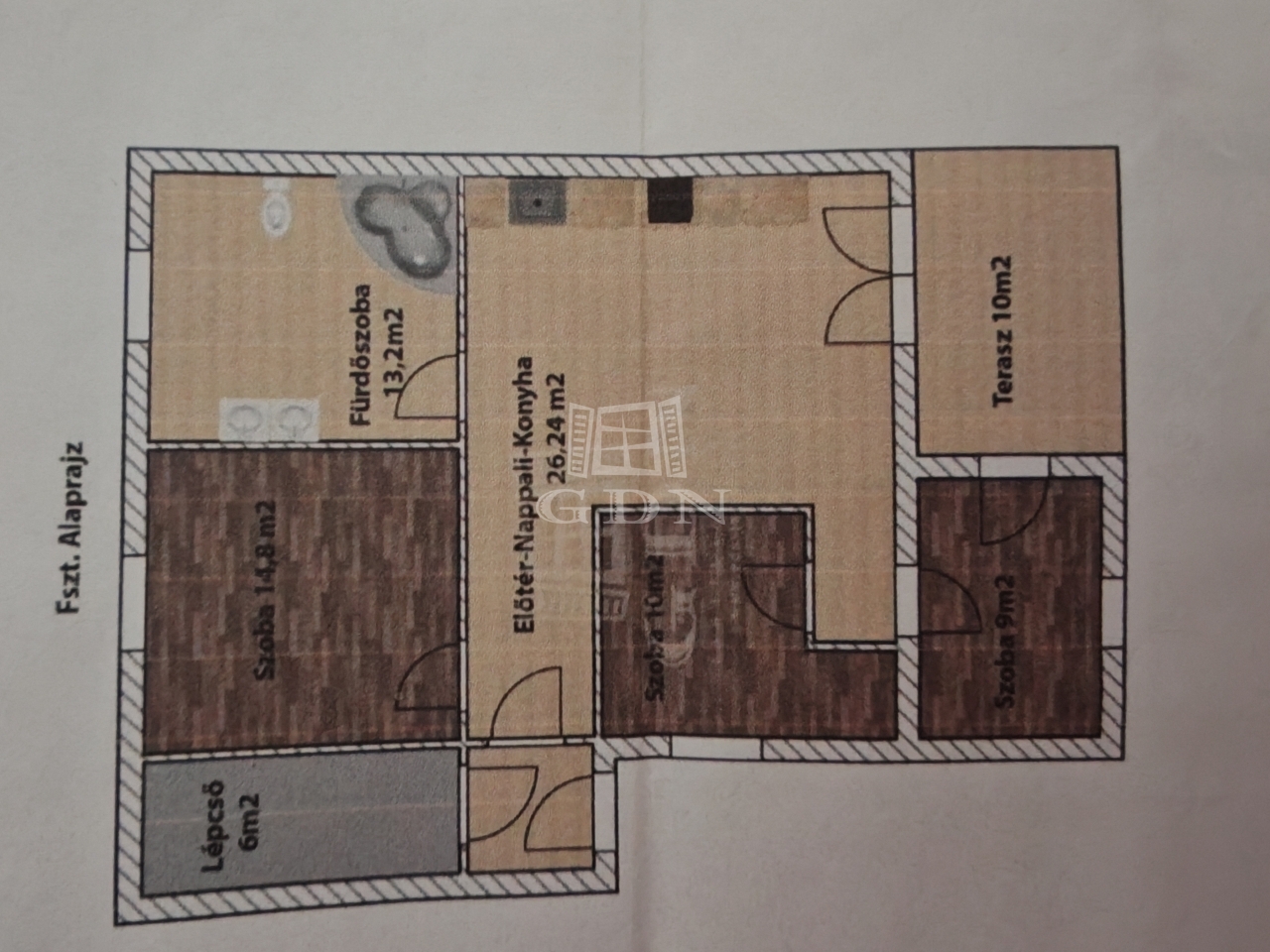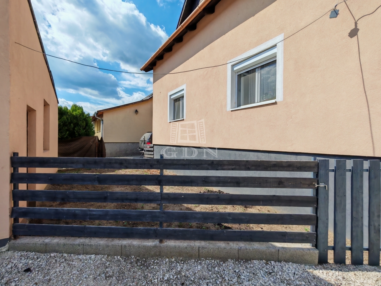 Isaszeg, Városközpontjának kertvárosi részén, eladó egy felújított nettó 73,24 m² fűtött, bruttó 78,24 m² alapterületű 2+2 szobás, GARÁZSOS, ALÁPINCÉCETT családiház földszinti lakása.