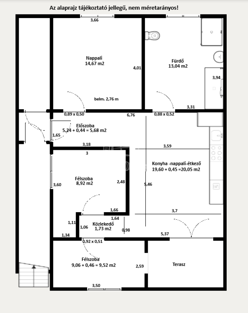 A falazat 53 cm vastag szigeteléssel együtt. Szerkezete tégla. A szigetelés vastagsága tájékoztató jellegű!