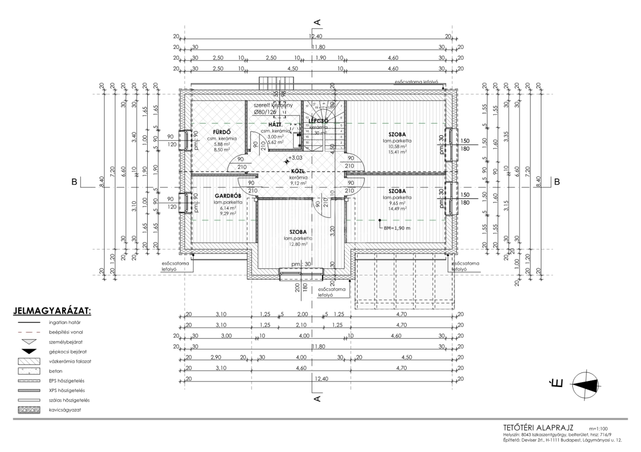 A ház elosztása: 152 m2 hasznos alapterület (bruttó: 170m2):