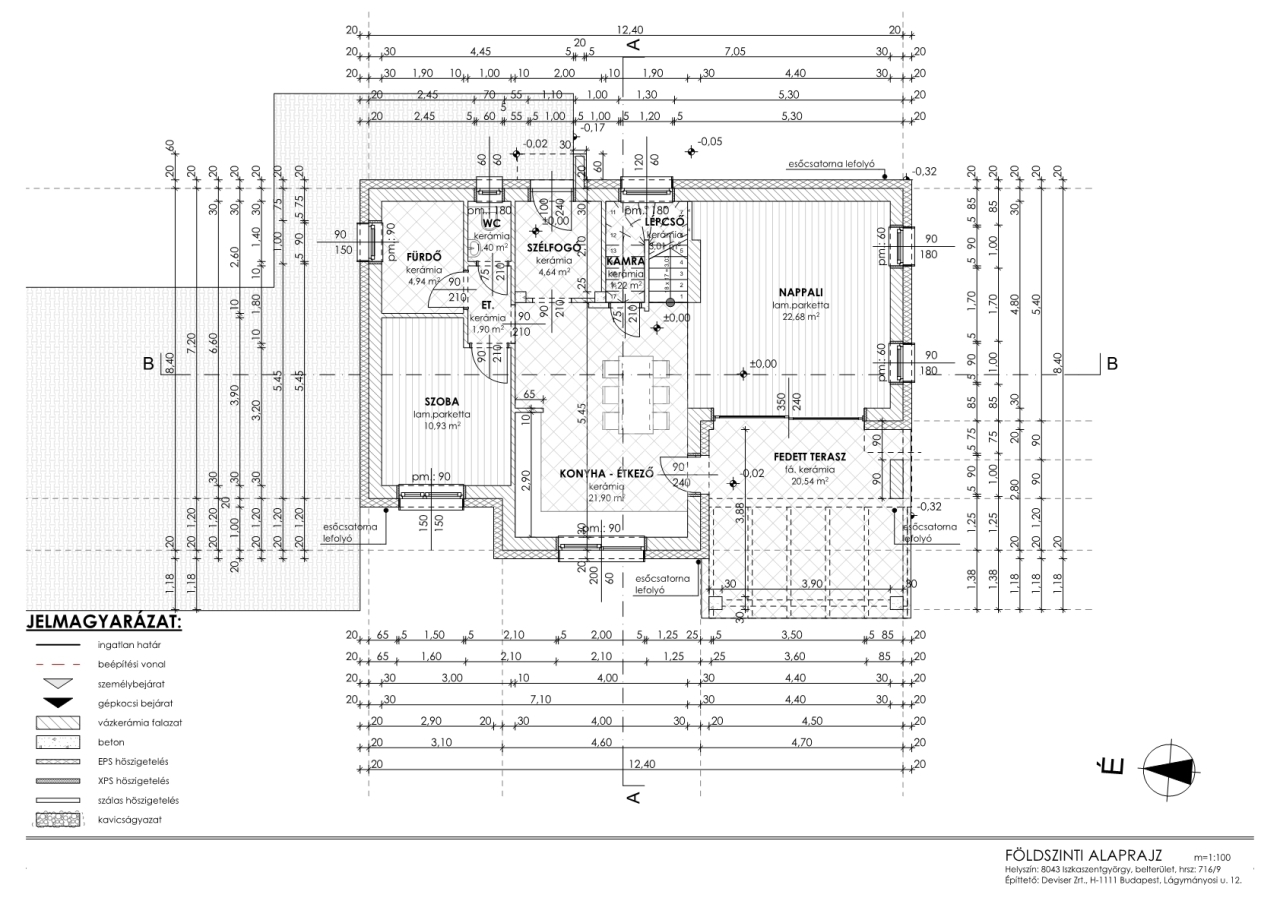 - Földszint: előtér, wc-kézmosó, tágas nappali- konyha-étkező,+ kamra, fürdő, fedett terasz (20m2)
