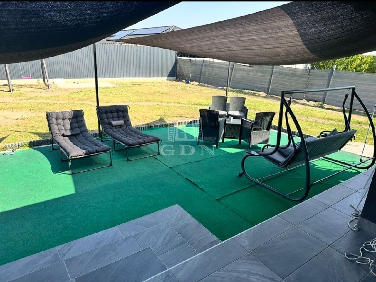 A ház egyedi hanhulatáról a 100nm-es fedett terasz(+ 60nm nem fedett) gondoskodik, ami remek kikapcsolódást bíztosít tavasztól késő őszig a család minden tagjának!