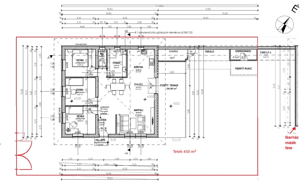 ➡ Kültér: 24,36 m²-es hatalmas UV szűrős polikarbonáttal fedett terasz, 6 m² szigetelt kamra és 4,5 m² szerszámos.