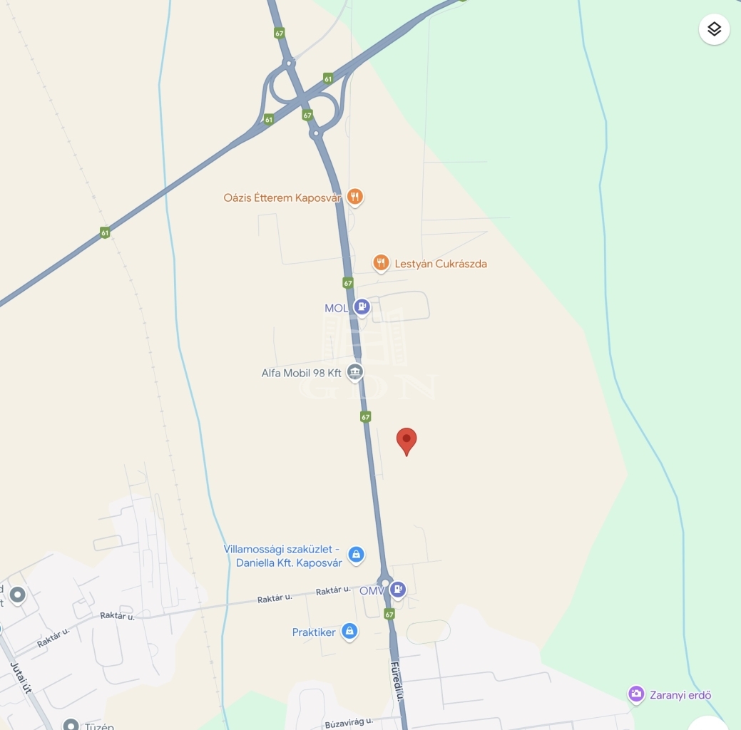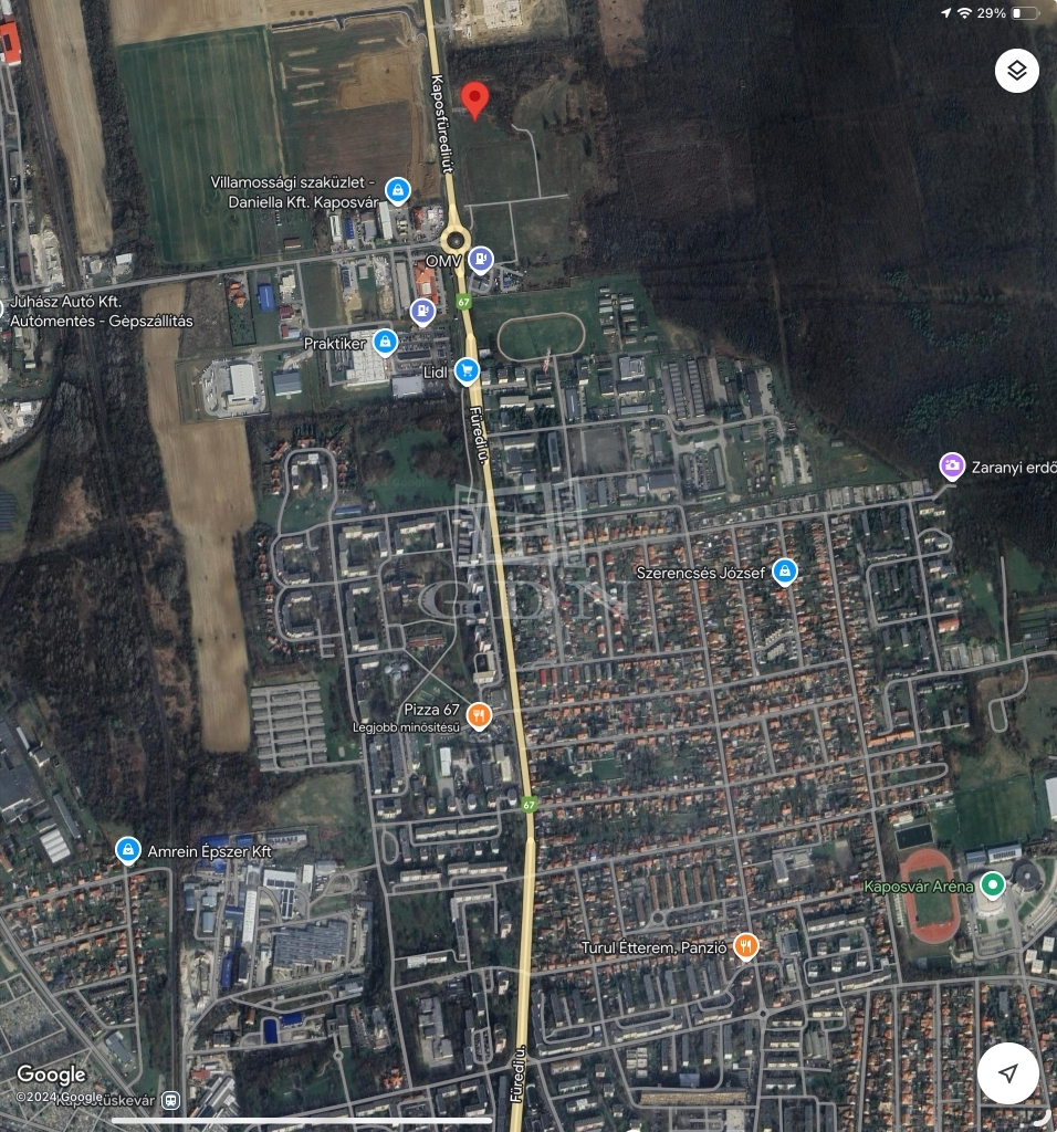 Kaposvár egyik legjobban frekventált részén, a Kaposfüredi úton eladóvá vált ez a 21.511 m²-es, tulajdoni lap szerint „kivett 3 egyéb udvar” megjelölésű belterületi telek.
