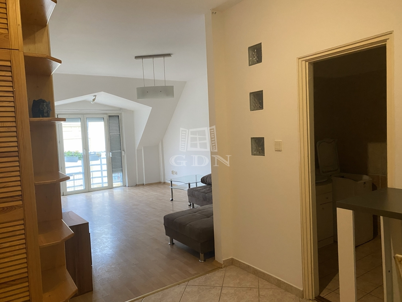 A lakásban, melynek rezsije nagyon alacsony, előtér, egy légterű nappali-konyha, valamint fürdő wc-vel található.