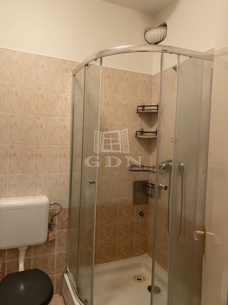 Helytakarékos megoldással a fürdőben zuhanykabin került beépítésre, növelve így a tér és komfort érzetet.