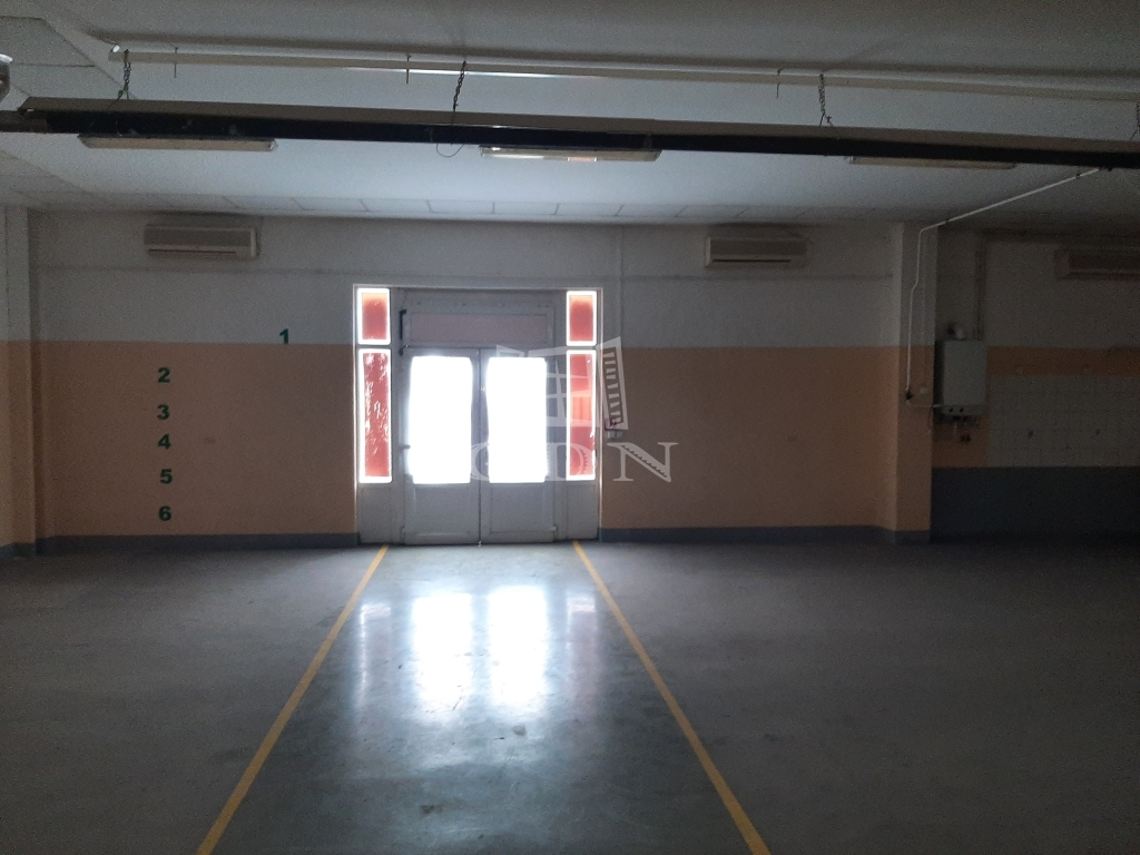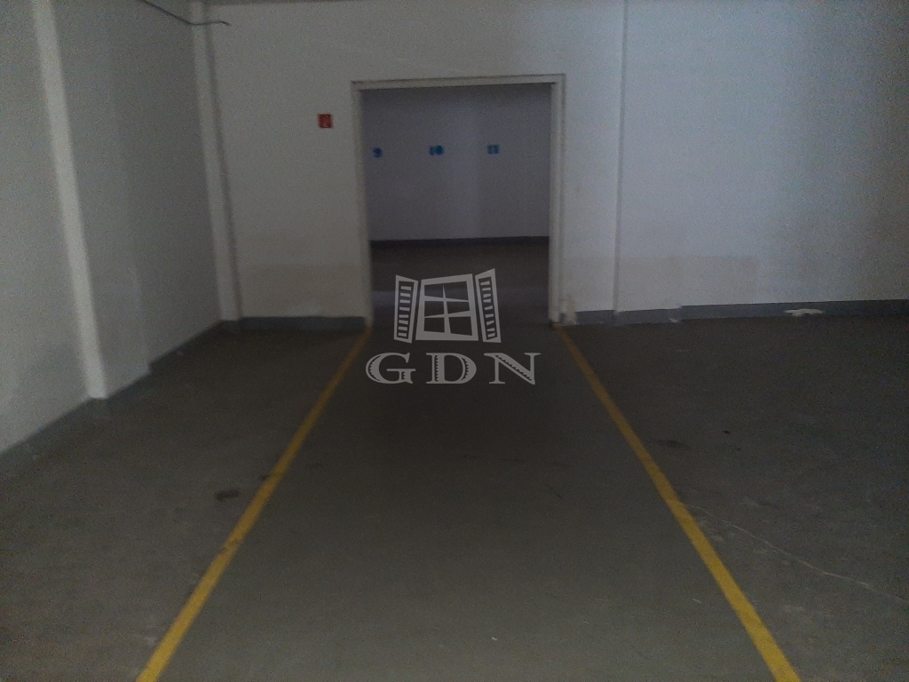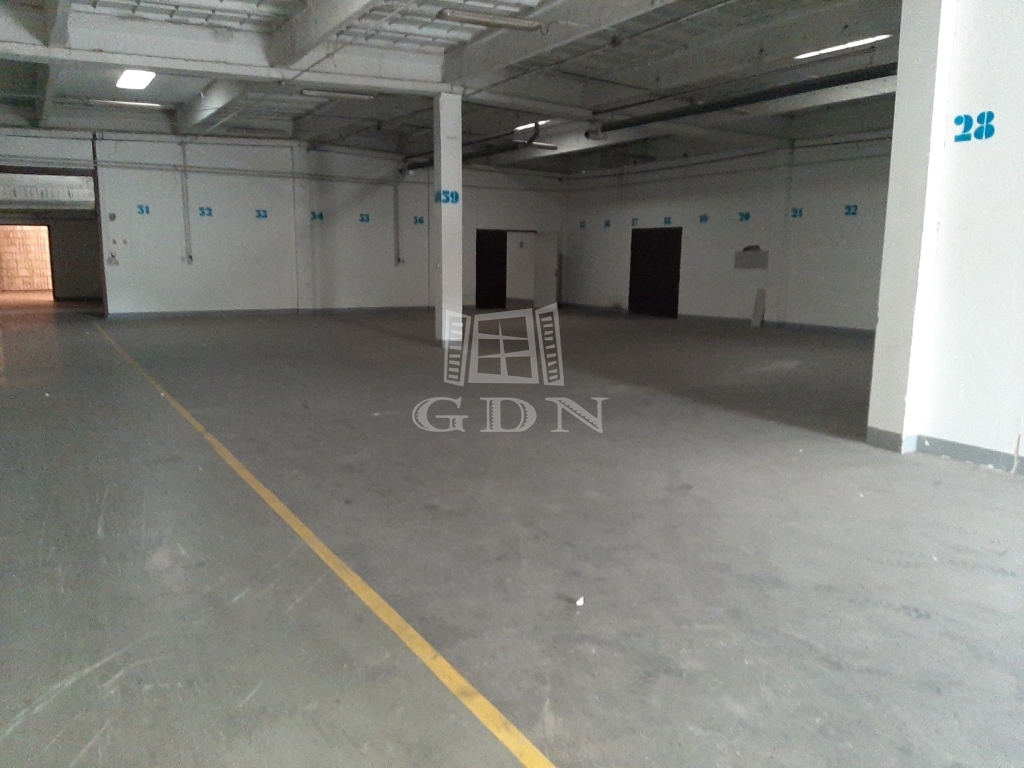 A raktár, melynek belmagassága 5 méter, kamionnal megközelíthető és a több elektromos kapunak köszönhetően a kamionok be is tudnak állni.