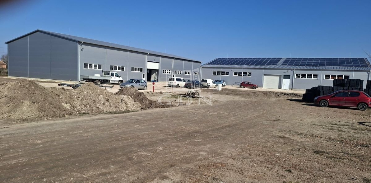 Kecskemét, főút menté, ipari területen, 13305 nm telken, 2 db, új építésű csarnoképület összesen 1656 nm területtel eladó.