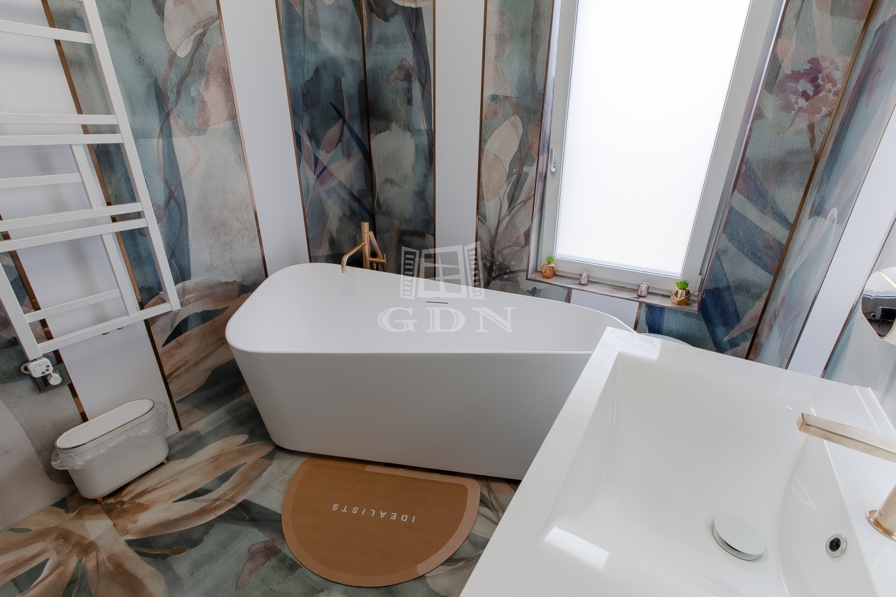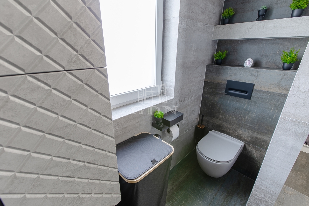 A tágas, világos nappali berendezve várja új tulajdonosát, a fürdőszobákban pedig felső kategóriás, bronz és rosegold színekben pompázó TRES csaptelepek és zuhanyok, valamint érintésmentes szappanadagolók és szemetesek szolgálják a kényelmet.