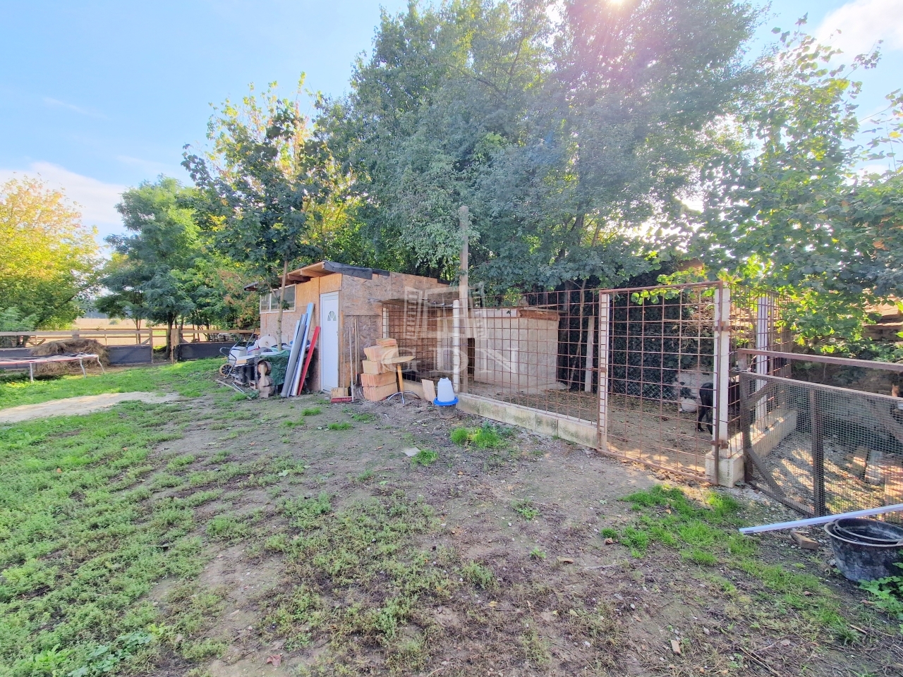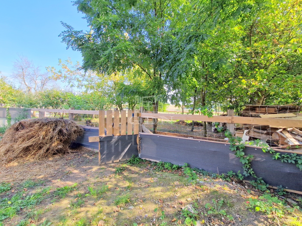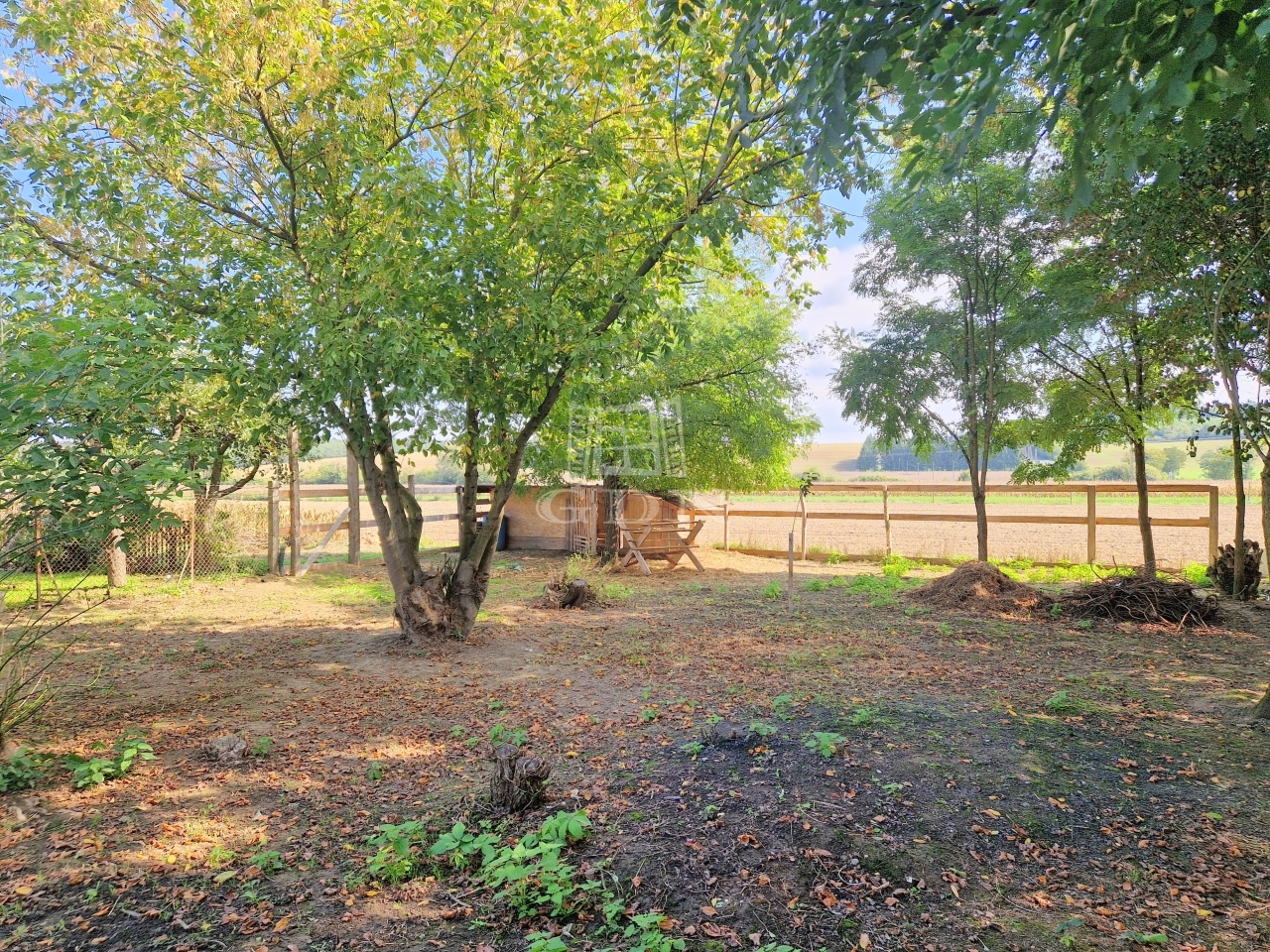 A 2098 m2 es terület több részre lett kertelve, kialakításra került egy kutyakennel is, megtalálható mellette egy cca. 40 m2- es tároló, továbbá kerti csap és ásott kút is rendelkezésünkre áll.