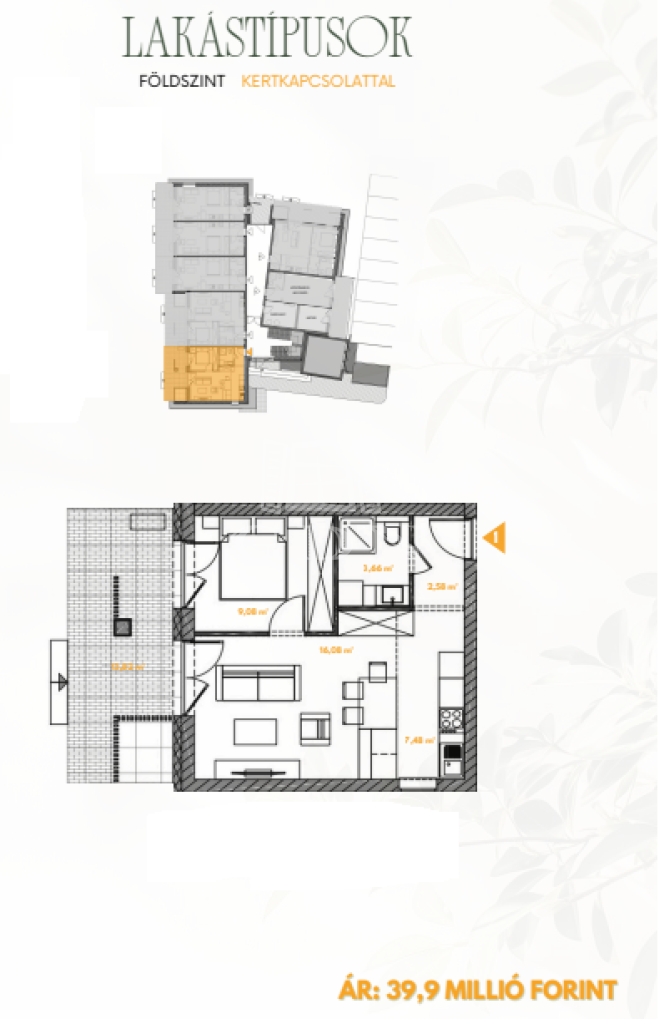 A 3 szintes lakóépület földszintjén, illetve első és második emeletén további lakások helyezkednek el, melyek 29, 30, 39, 40 és 46 m2 alapterületűek.