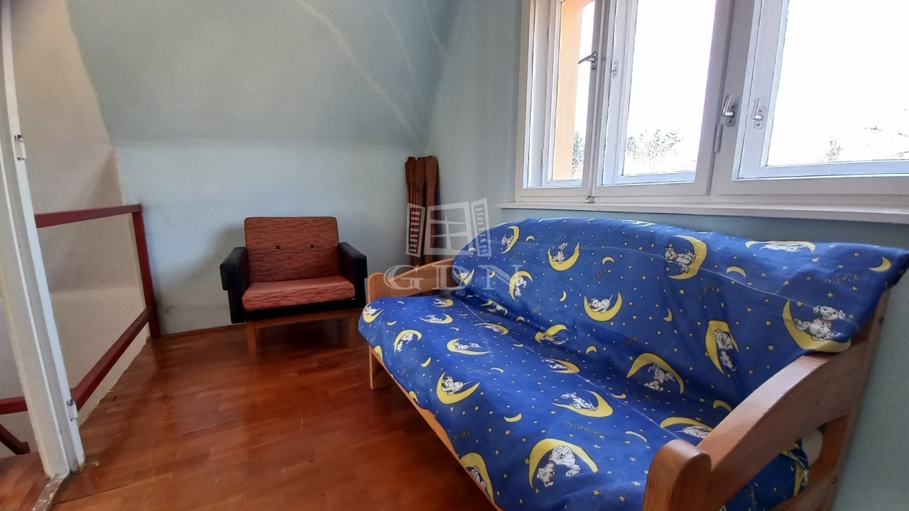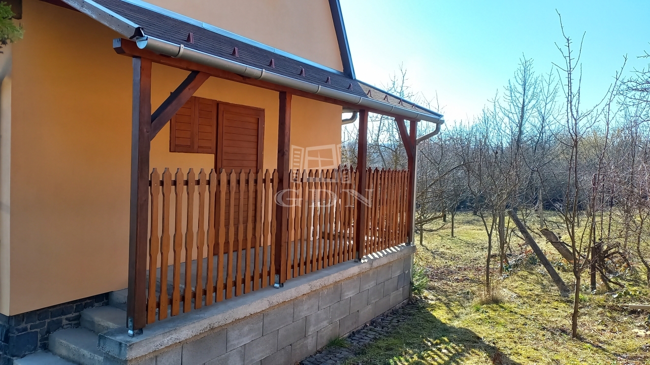 A hétvégi ház 2 szobás kialakítású, az alsó szinten egy nappali, fürdő és konyha kapott helyet, míg a padlástérben egy körbejárható hálószoba található, amely két kisebb, különálló hálóként is funkcionálhat. A fűtésről vegyestüzelésű kazán gondoskodik, amely gazdaságos és hatékony megoldás. Azonban a hálószobába egy hűtő-fűtő klímát is beépítettek. A ház kívülről 4 cm-es nikecellel hőszigetelt, a padláson 10 cm-es szigetelés található. A fürdőszobát néhány éve újították fel, a vízellátást a kristálytiszta vízzel, korlátlan vízhozammal rendelkező fúrt kút szolgáltatja. Áramlás kapcsolós házi vízmű és villanybojler segíti a komfortot. Mosógép és mosogatógép is ráköthető a rendszerre.