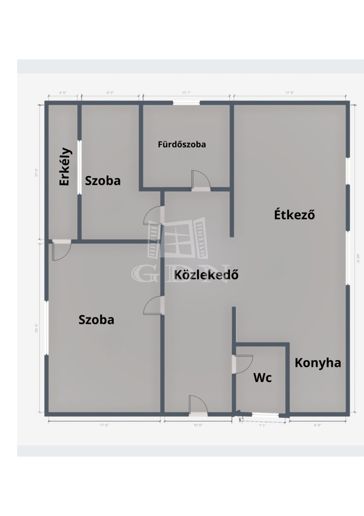 A lakás praktikus elrendezésű, helyiségei: másfél szoba, nappali, konyha, közlekedő, fürdőszoba, külön WC, valamint egy kellemes erkély, amely ideális pihenésre vagy egy nyugodt reggeli kávé elfogyasztására. A lakótér 2,6 méteres belmagassággal rendelkezik, amely tágas, kellemes térérzetet biztosít.