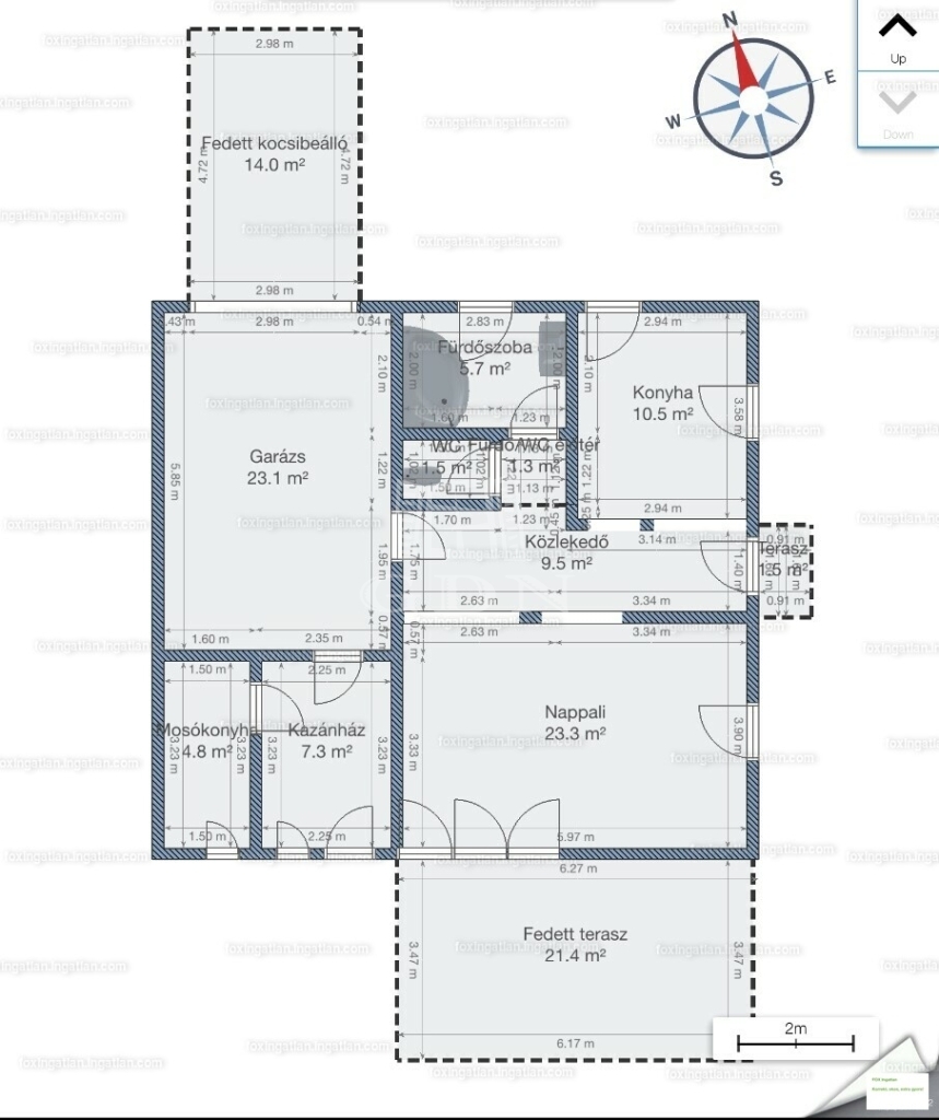 A garázson keresztül érhető el a mosókonyha és kazánház ahonnan szintén kiléphetünk a kertbe, valamint a nagyméretű spájz is.