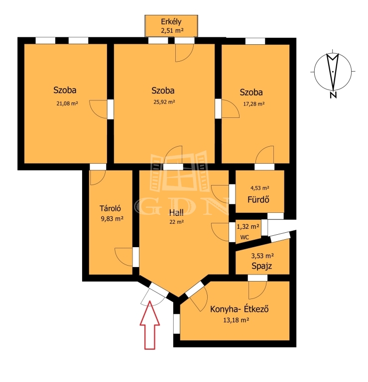 Az ingatlan 119 nm, polgári jellegű, nagy terekkel és belmagassággal rendelkezik.