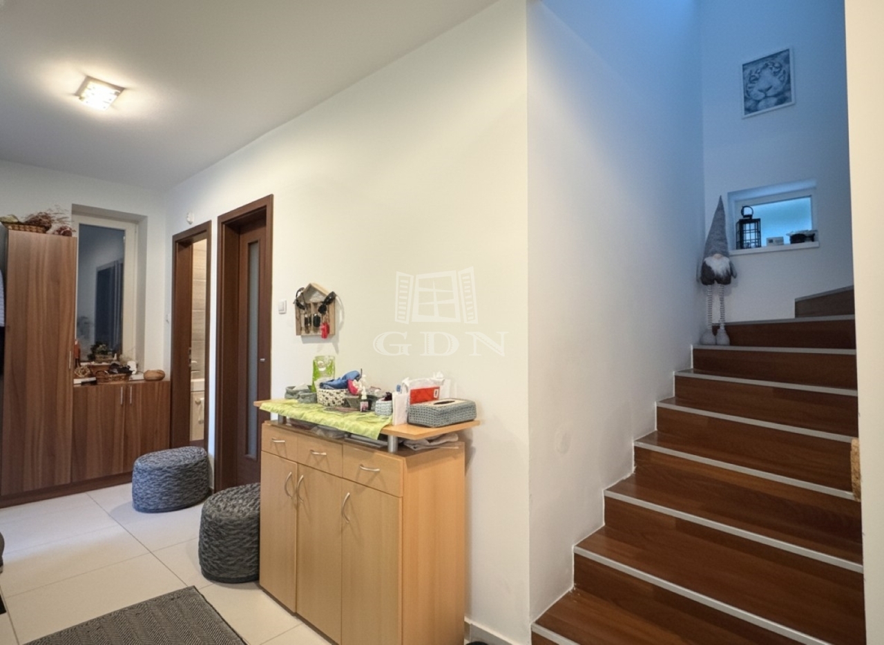A telek 584m2, egy része térkövezett, hátsó része füvesített. A házhoz kapcsolódik egy fedett beálló és egy garázs is.