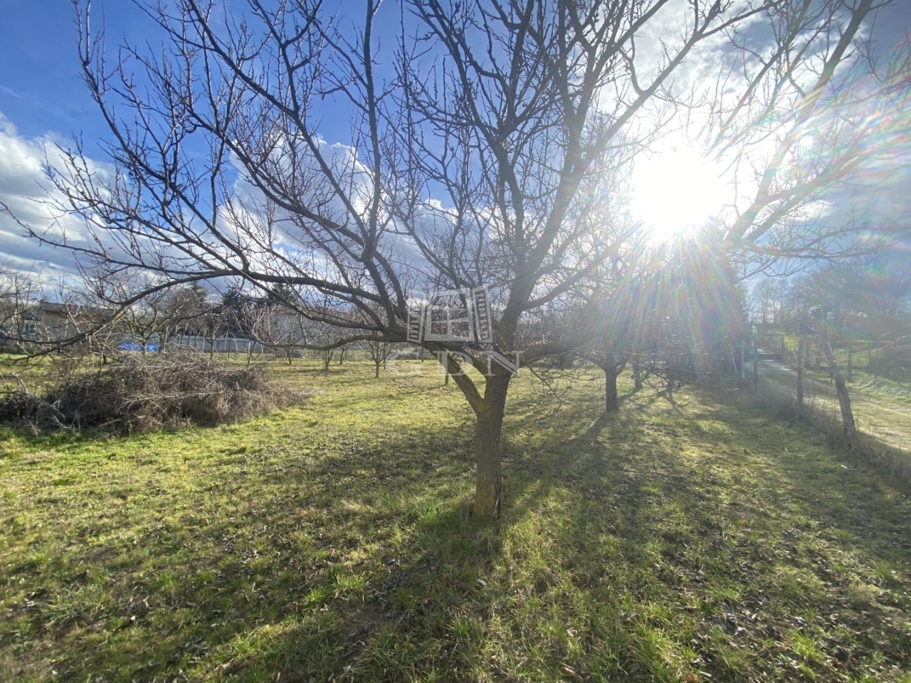 Jelenleg füvesített, található rajta több gyümölcsfa is.