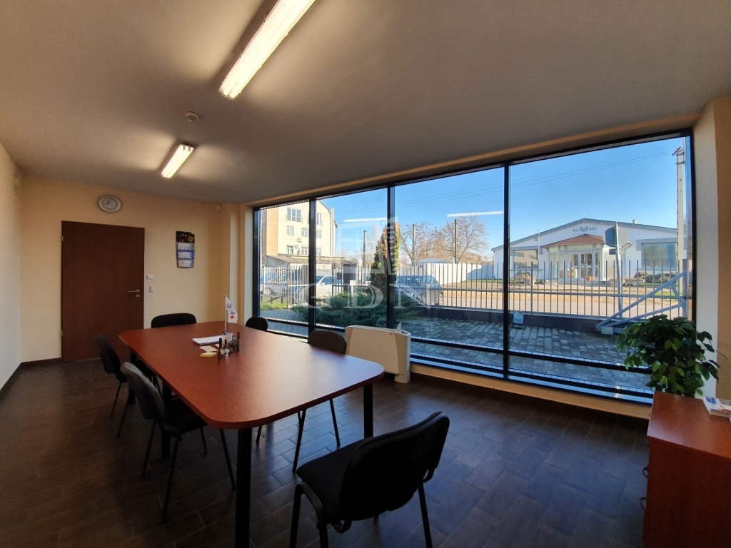 Az épület elosztását tekintve egy utcafronti háromszintes iroda-fejépületből és egy kétszintes, több szekcióból álló, de egybenyitható gyártó-üzemi és/vagy raktár területből áll.