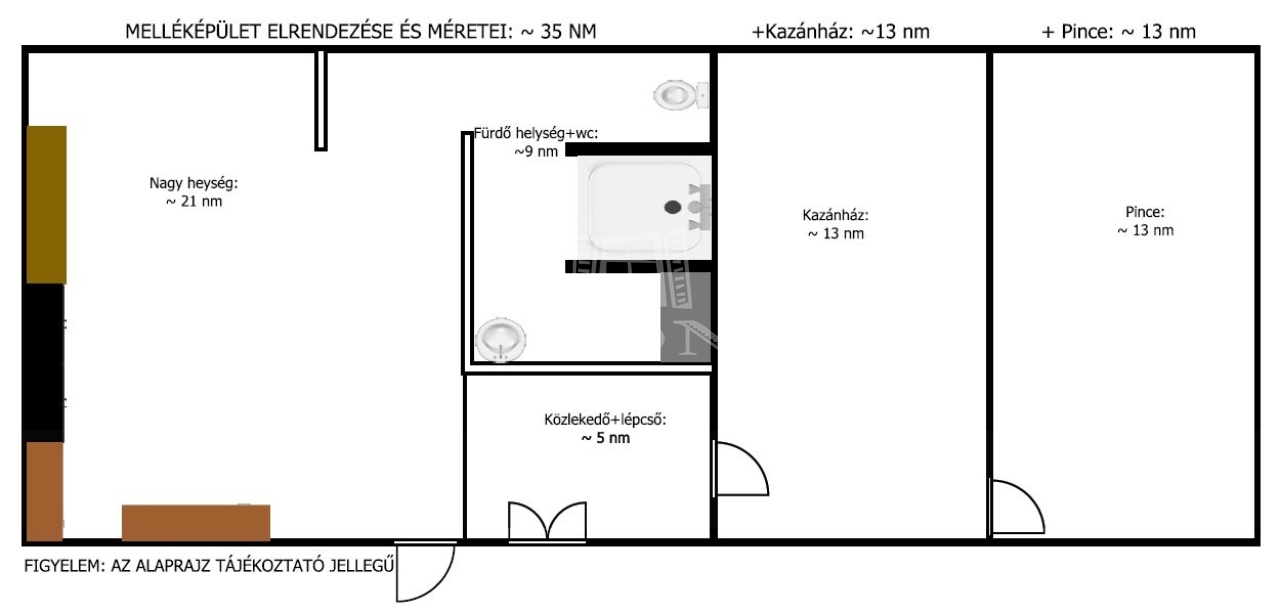 - kazánház + pince mérete: 26 nm,