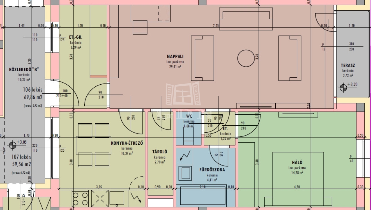 Az új építésű társas ház várhatóan 8 hónapon belül kerül átadásra, mely korszerű hő takarékos építészeti megoldásokat alkalmazva készül el. A falazata monolit vasbeton vázszerkezettel Porotherm 30 X-Therm Rapid dryfix kerámia tégla falazatta épül, mely 12 cm-es EPS Grafit homlokzati hőszigetelést kap.