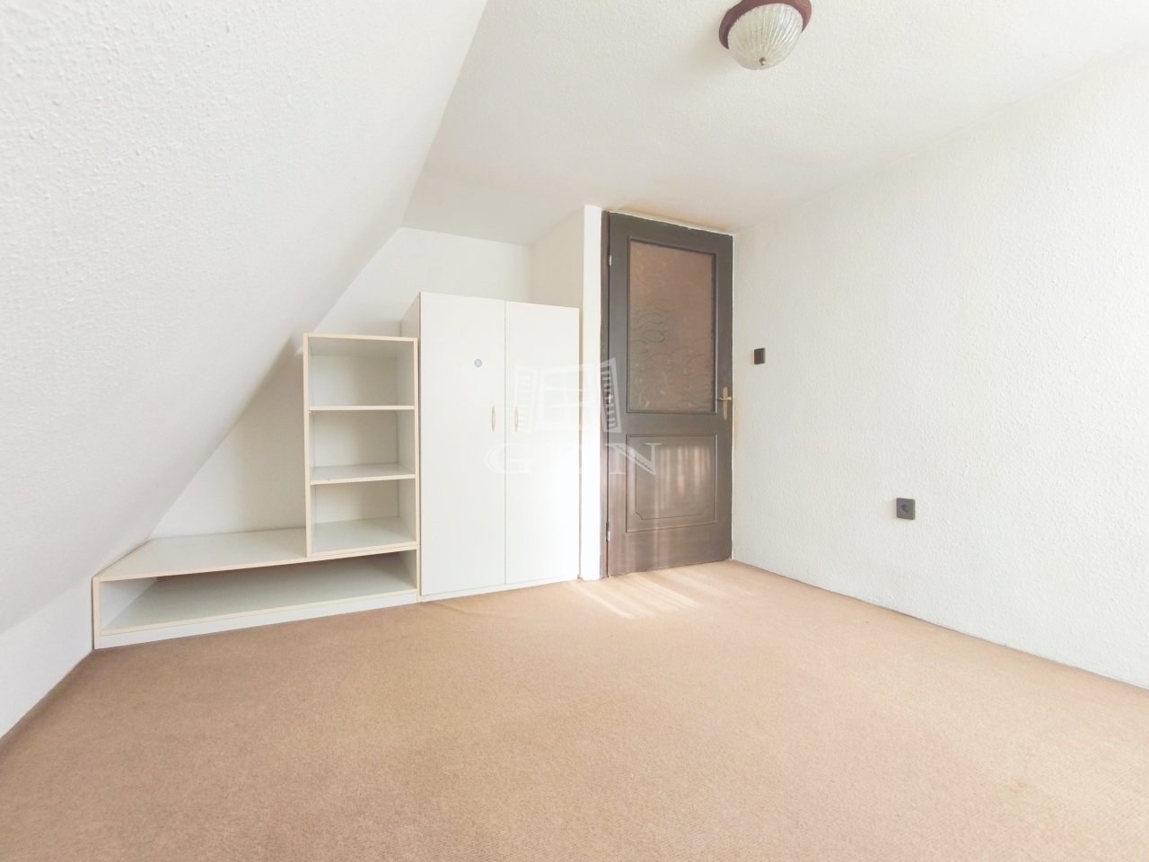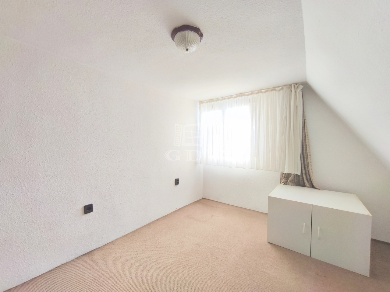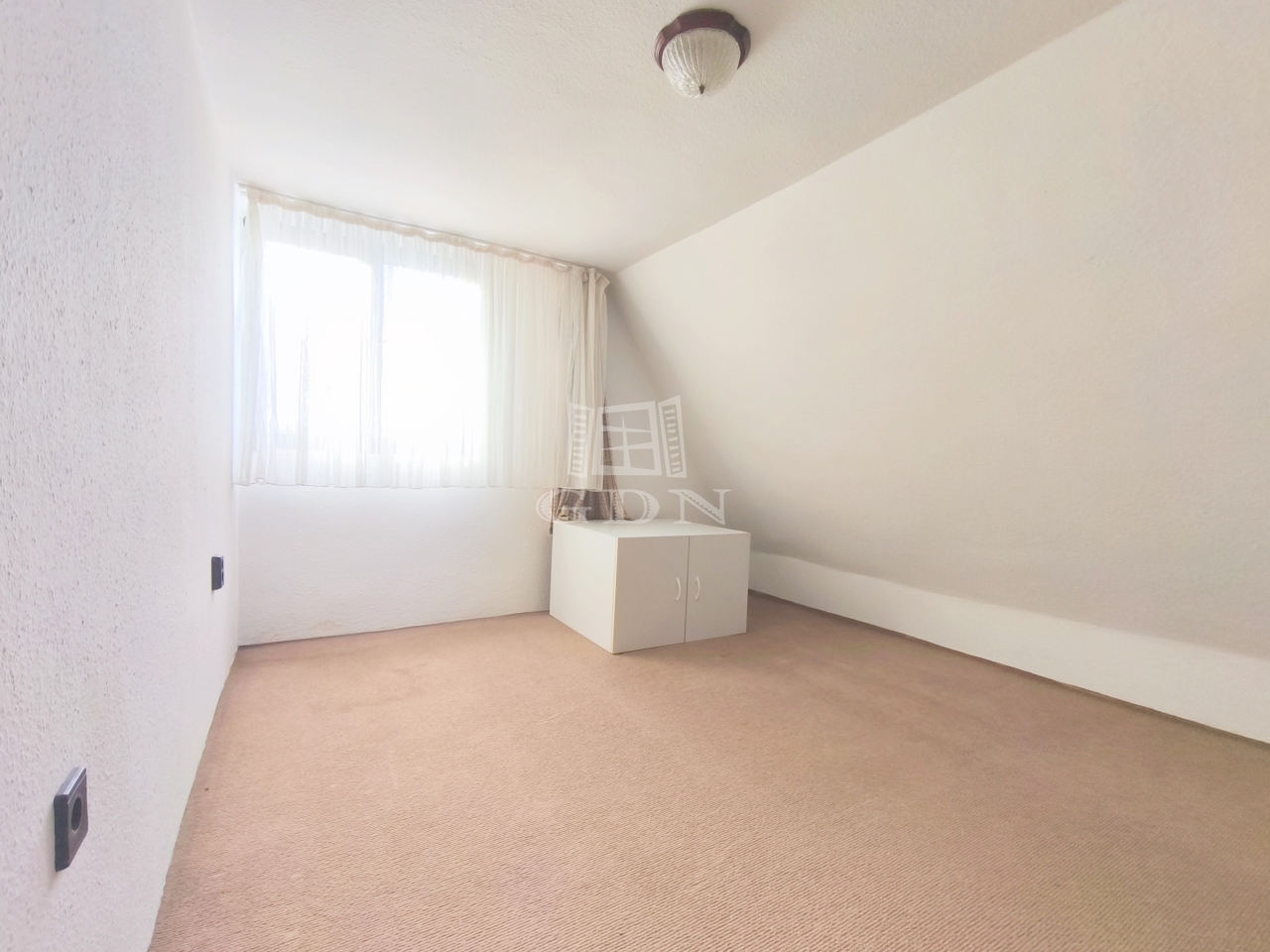 Az emeleten egy padlószőnyeges szoba kapott helyet méretre készített beépített szekrénnyel, valamint egy szerkezetkész helyiség, amely fürdőszoba kialakítására előkészítve várja az új tulajdonosát.