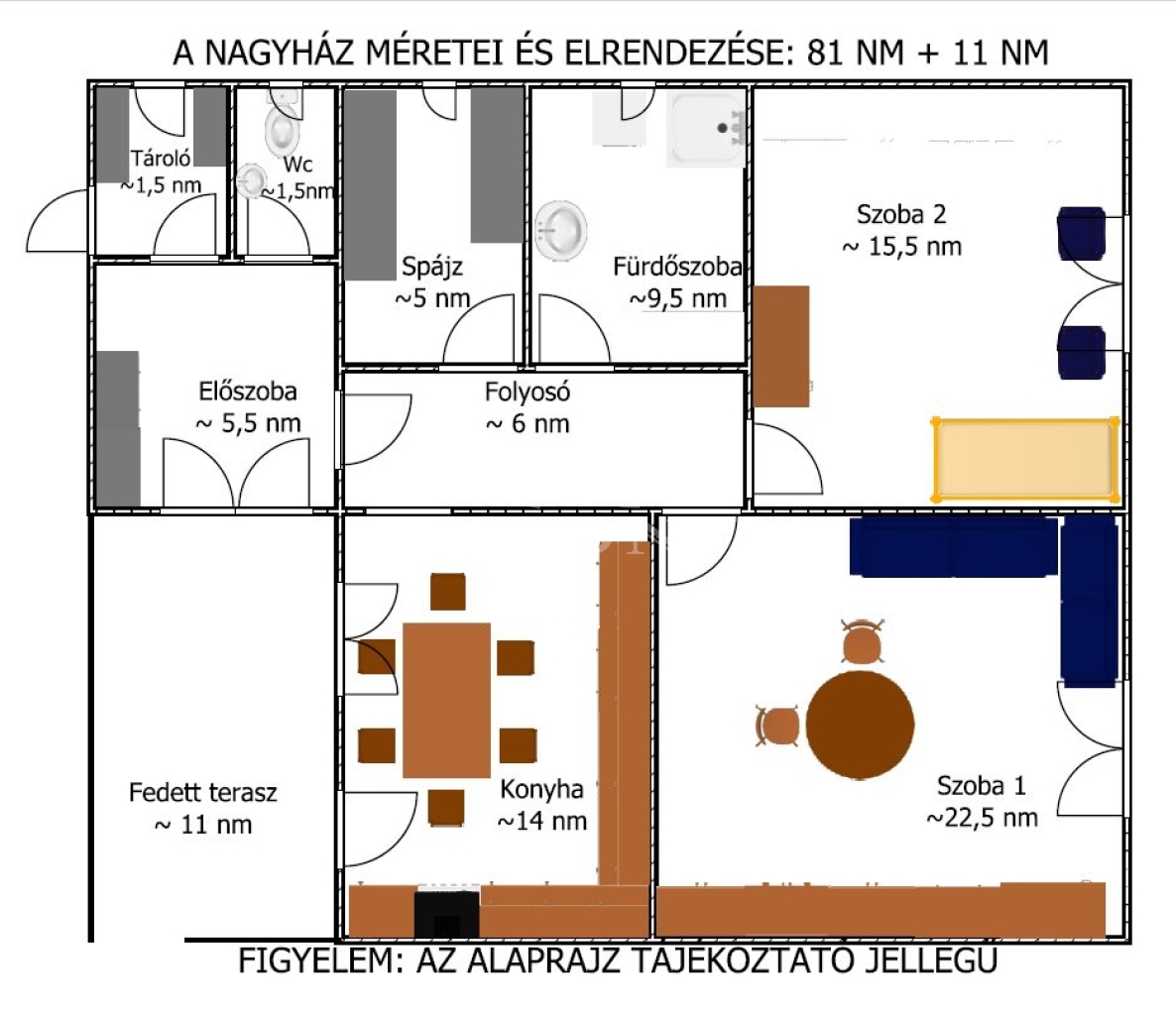 - nagyház (lakó épület): 81 nm+ 11 nm fedett terasz,