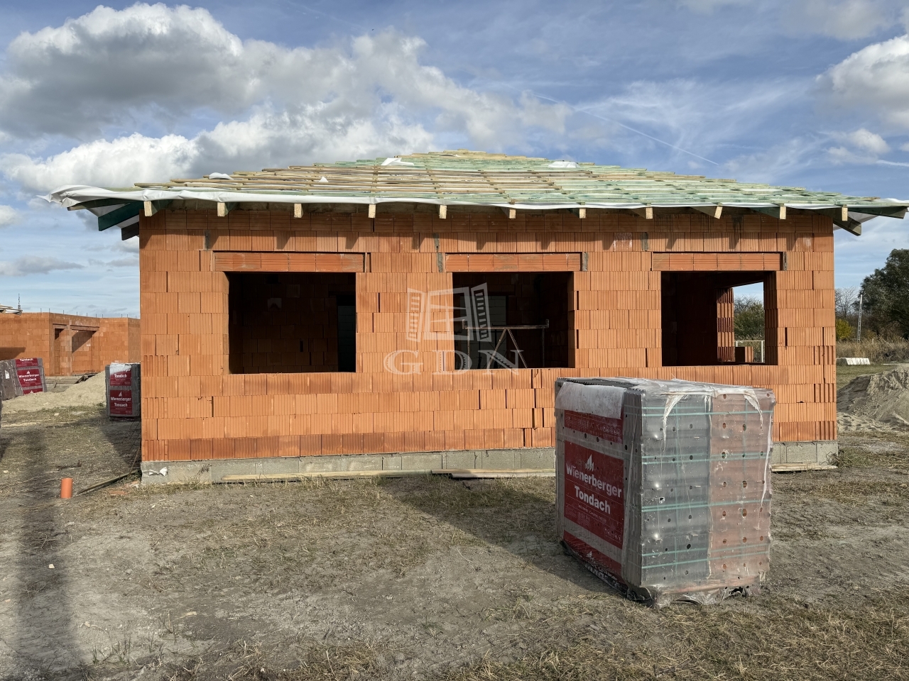14 lakás alapja elkészült, a tartószerkezeti falak kialakítása folyamatban van. Az ingatlanokhoz szükséges tégla, cserép, fa anyag, nyílászárók beszerzése megtörtént.