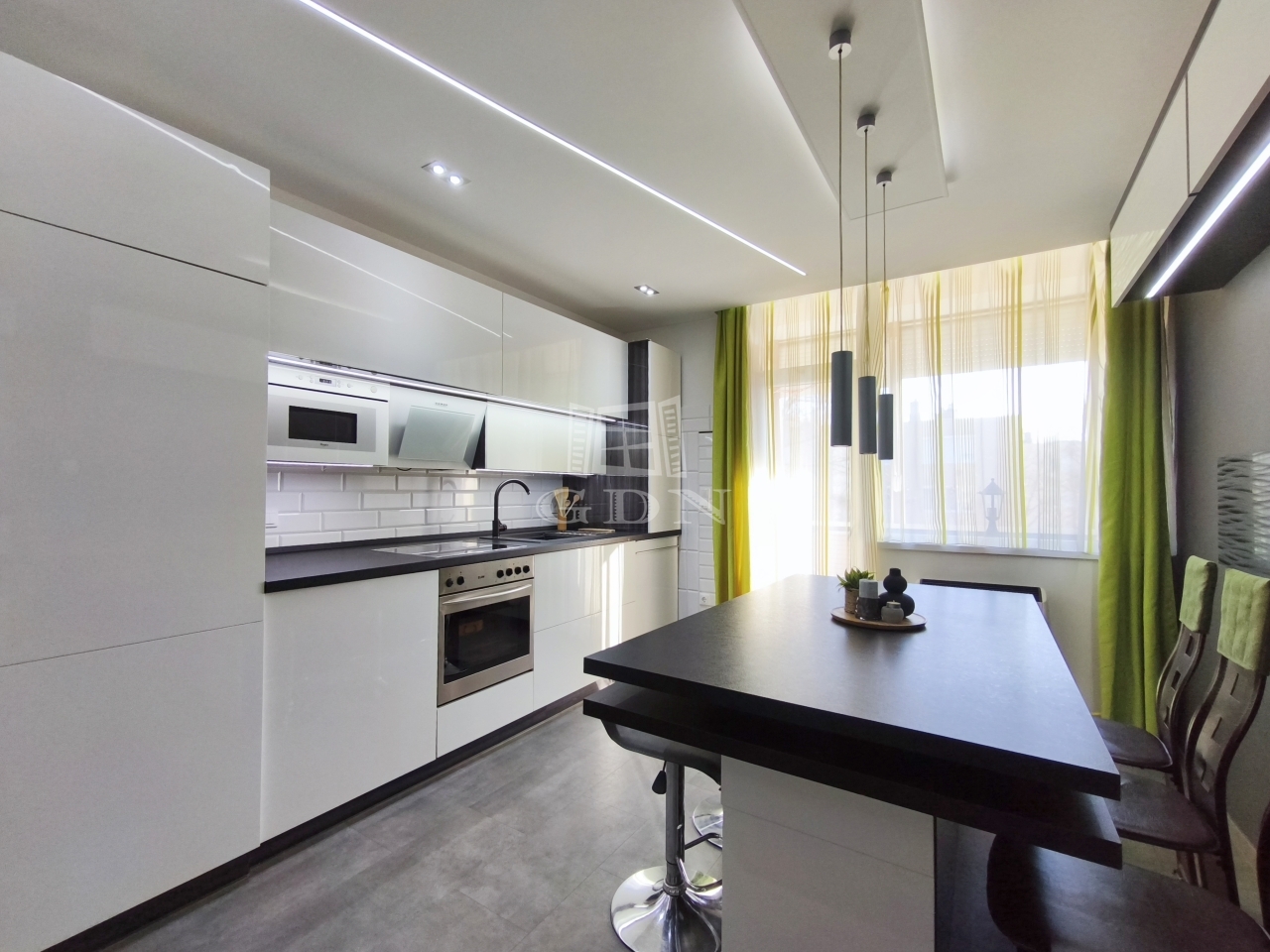 A gépesített, beépített konyha sütővel, hűtőszekrénnyel, mikrohullámú sütővel és kivezetett szagelszívóval felszerelt, így a lakás azonnal költözhető.